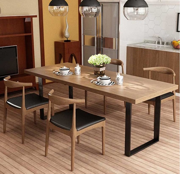 Thiết kế bàn ăn chân sắt mặt gỗ