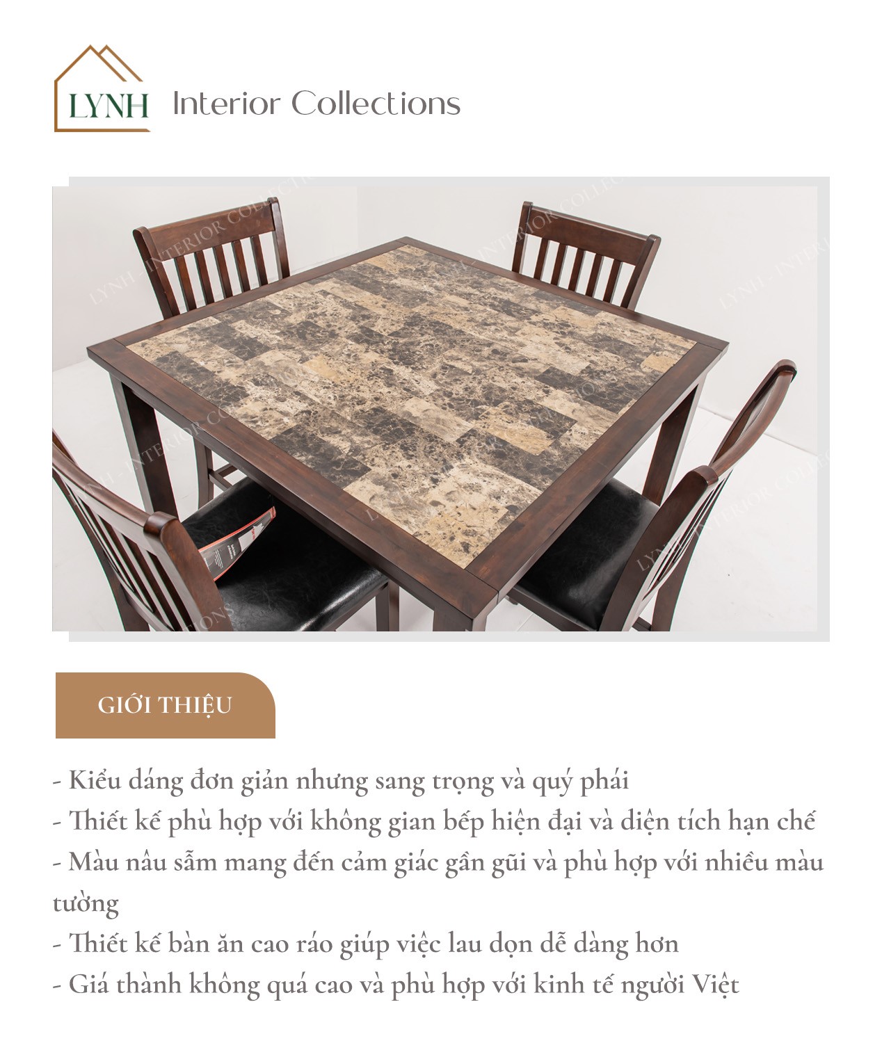 Mẫu bàn ăn hiện đại tại LYNH đang được rất nhiều khách hàng lựa chọn bởi: kiểu dáng đơn giản, nhỏ gọn và cao ráo giúp việc lau dọn sản phẩm dễ dàng hơn.