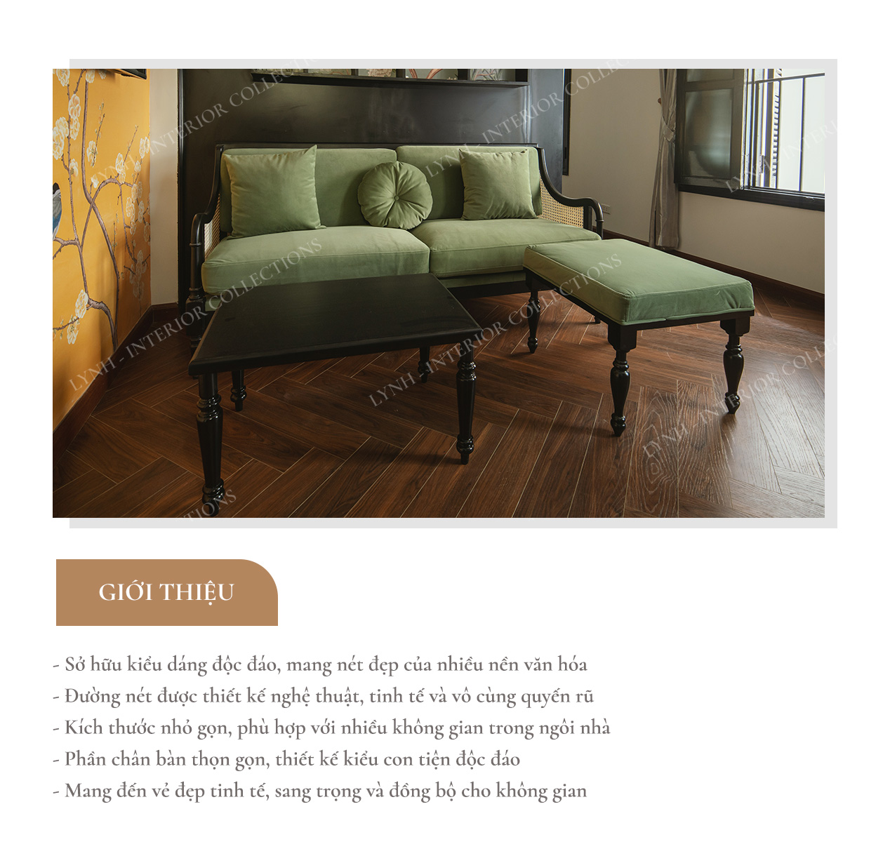 Mẫu bàn trà indochine sở hữu kiểu dáng thanh thoát, đường nét thiết kế hoàn hảo với phần chân bàn con tiện độc đáo. Bên cạnh đó, với kích thước nhỏ gọn bàn trà sofa phù hợp với những căn phòng có diện tích không quá rộng. Đem lại không gian hài hòa, độc đáo với nét đẹp của nhiều nền văn hóa khác nhau.