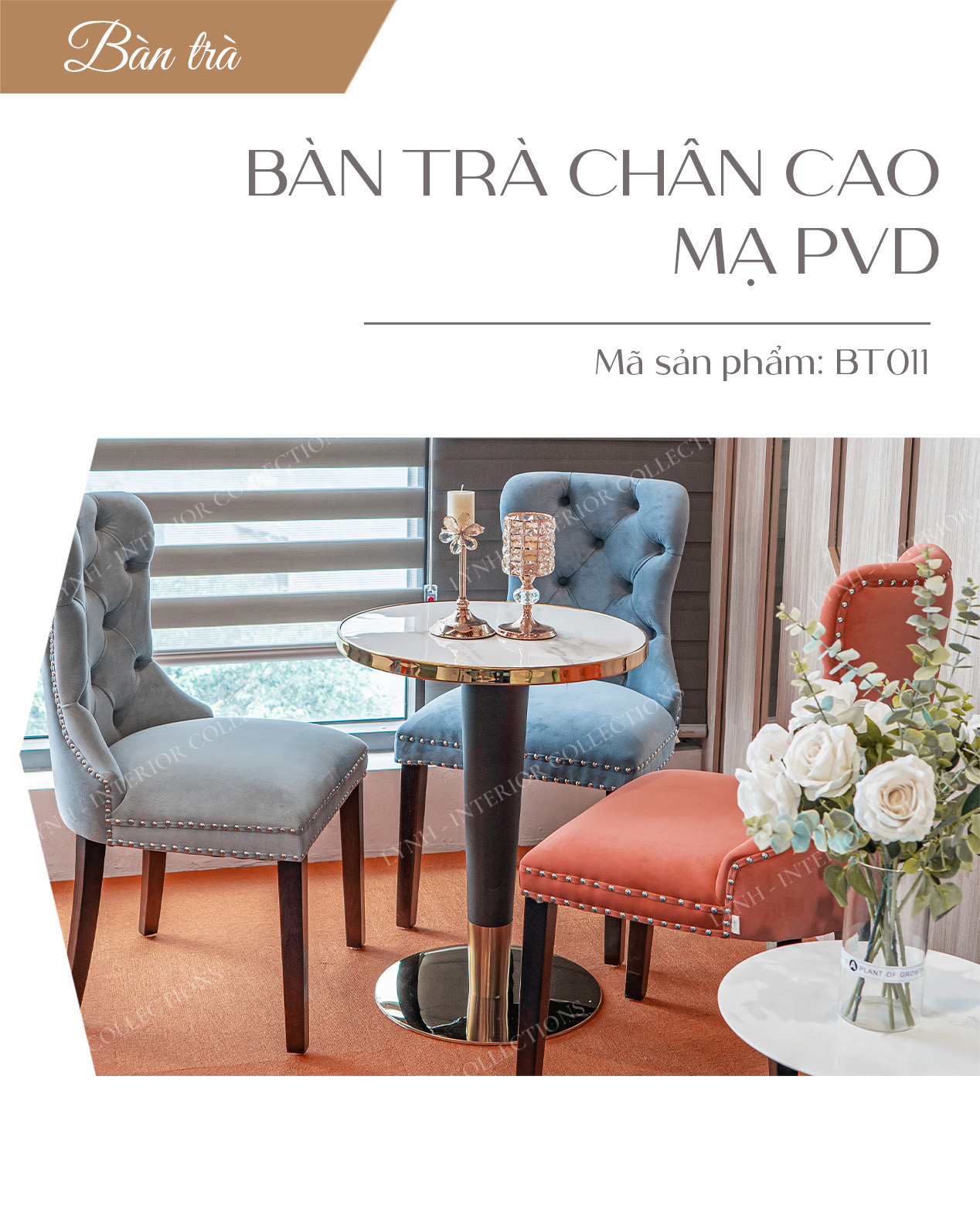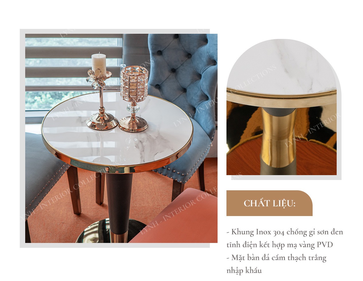 Mẫu bàn trà chân cao mạ PVD tại Lynh đang làm mưa làm gió trên thị trường bởi thiết kế lạ mắt. Sở hữu phong cách hiện đại, sang trọng và tinh tế, sản phẩm trở thành điểm nhấn cho toàn bộ không gian mà nó hiện hữu.