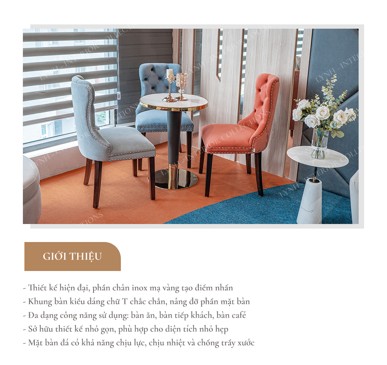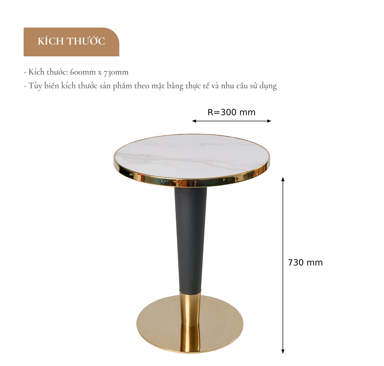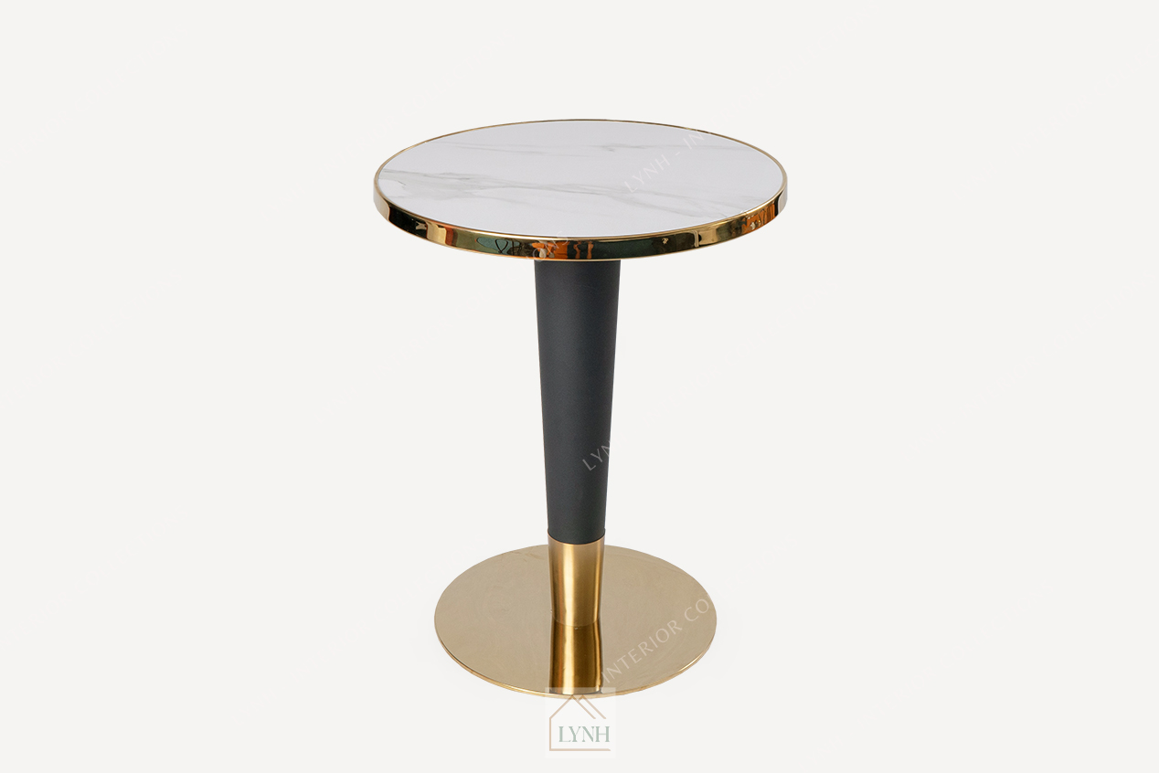 Phần mặt bàn đá kết hợp với phần chân sắt sơn tĩnh điện đen mạ vàng tạo nên một sản phẩm cực kỳ hoàn mỳ và đẳng cấp. Mẫu bàn đẹp đơn giản phù hợp với không gian quán cafe, văn phòng làm việc hoặc showroom hiện đại,…