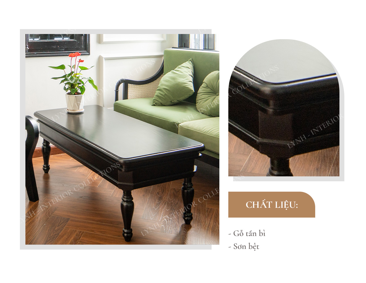 Kết cấu bàn trà gỗ vô cùng chắc chắn, thiết kế gọn gàng và vô cùng an toàn cho người sử dụng. Những chi tiết mặt bàn được gia công mịn màng và được phủ sơn bệt, giúp giảm nguy cơ trầy xước. Bên cạnh đó, với màu sắc dễ đơn giản, dễ dàng kết hợp với các món đồ nội thất khác trong không gian.