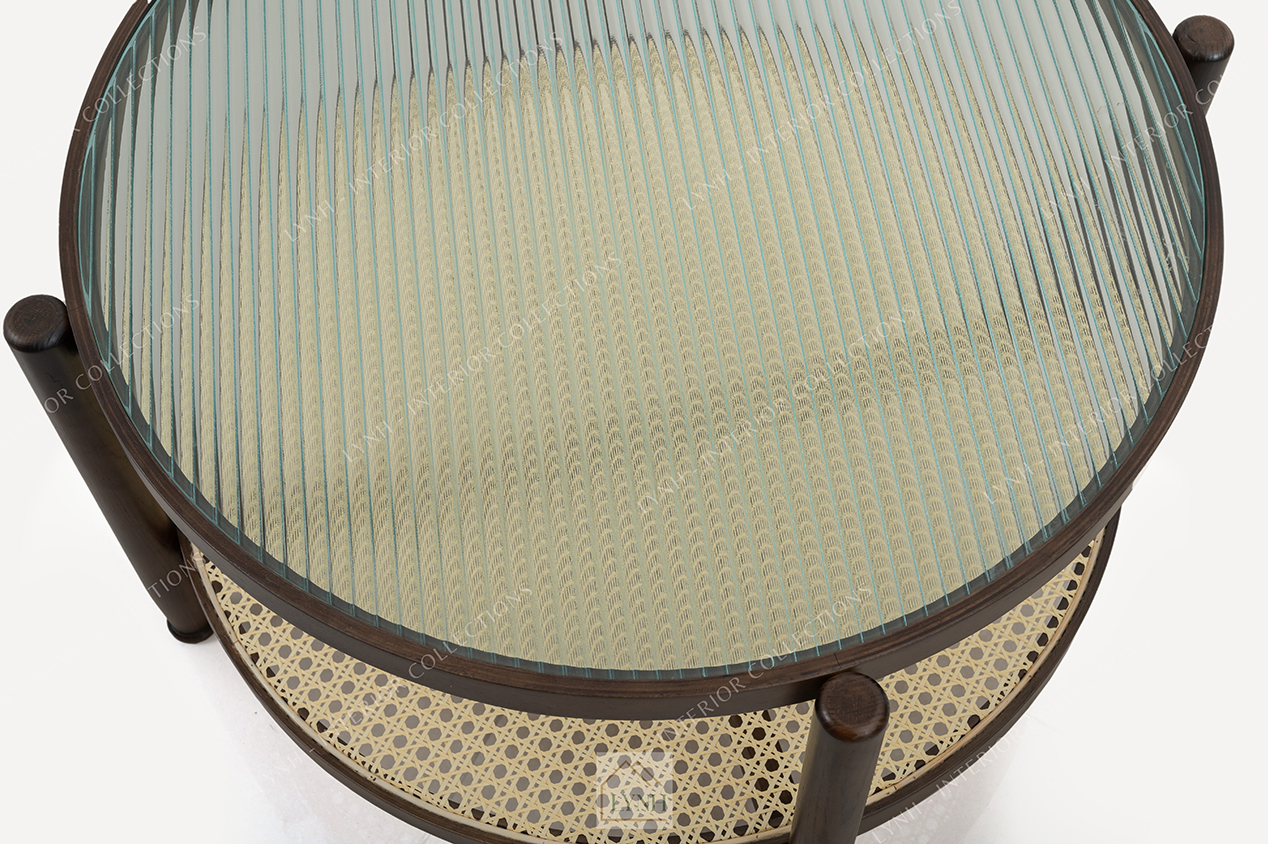 Bàn trà 2 tầng mặt kính sóng được thiết kế theo phong cách hiện đại, nhưng vẫn sở hữu nét đẹp sang trọng. Sự kết hợp hoàn hảo giữa gỗ, mây nhựa và kính cường lực mang đến dấu ấn độc đáo không gian bày trí. Mặc dù không quá hào nhoáng nhưng lại vô cùng sang trọng và gần gũi.
