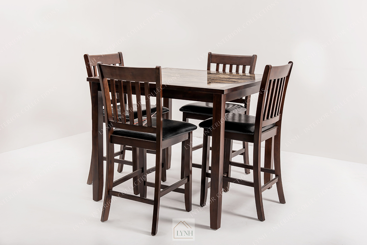 Bộ bàn ăn vuông hiện đại tại Lynh bao gồm: 1 bàn ăn vuông chân cao và 4 ghế ngồi kiểu bar. Bộ sản phẩm sở hữu thiết kế không quá cầu kỳ với sự kết hợp hoàn hảo giữa chất liệu gỗ và da, tạo nên sự sang trọng, cuốn hút đặc biệt cho không gian.