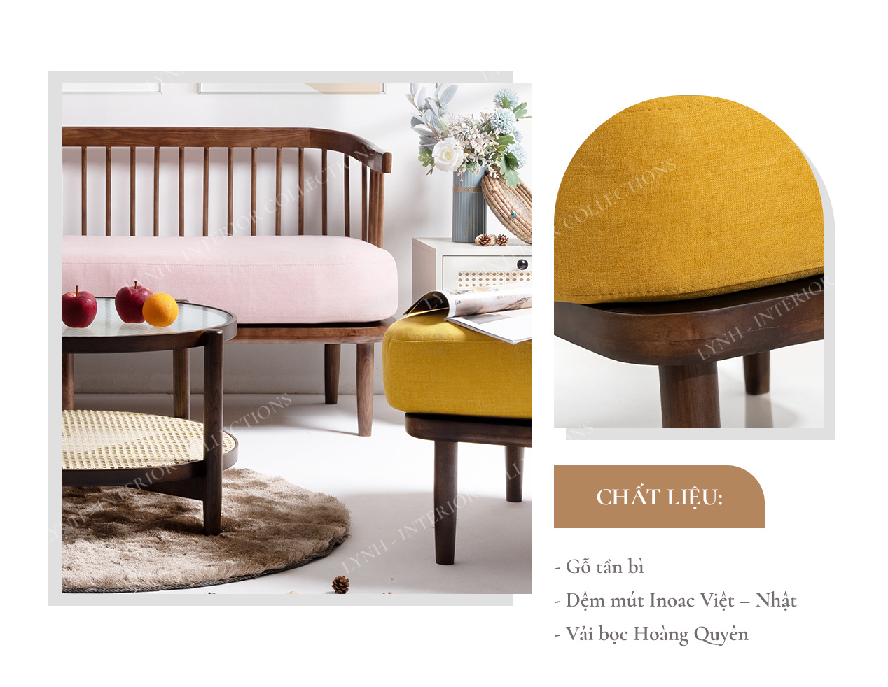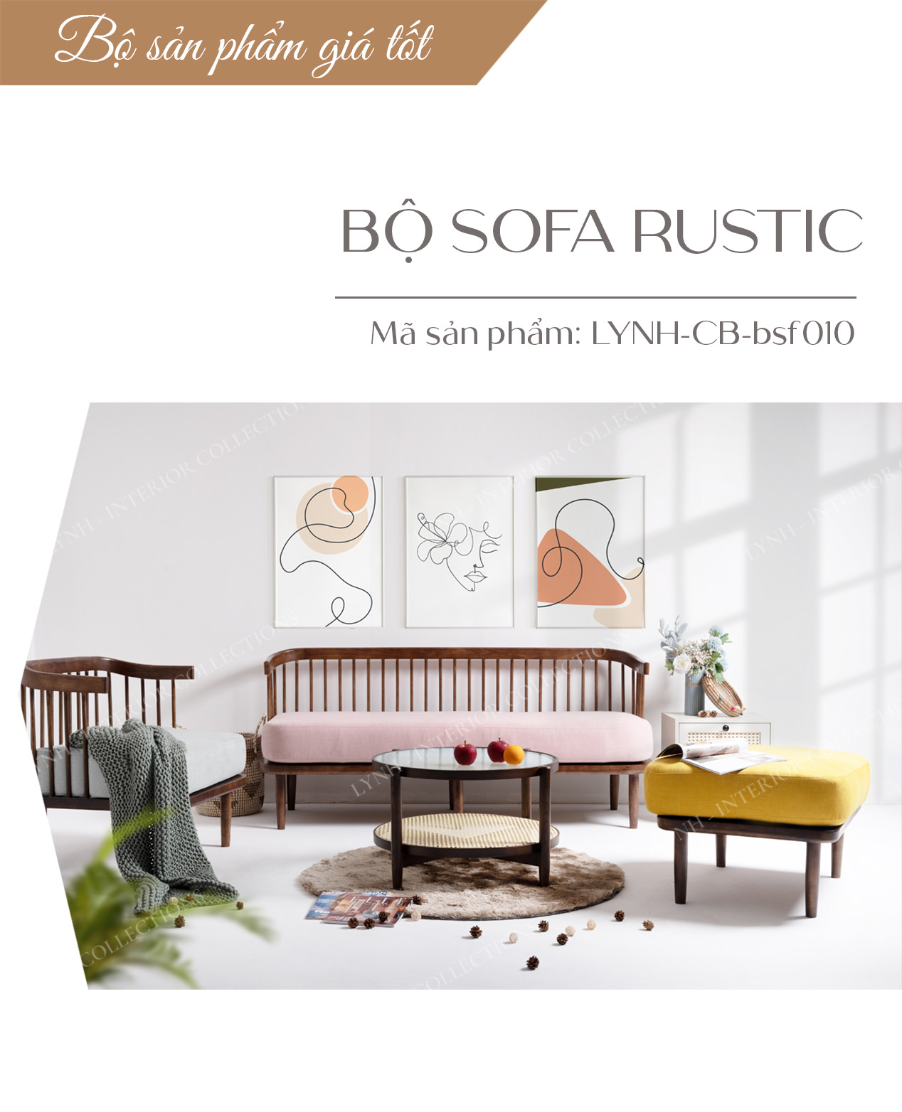 Bộ sofa Rustic bao gồm: Sofa văng gỗ tay cong, sofa đơn gỗ tay cong, đôn Fly, đây là combo hoàn hảo cho phòng khách của mọi gia đình. Ngoài ra, khách hàng có thể tùy chỉnh kích thước sản phẩm để phù hợp với thực tế và nhu cầu sử dụng.