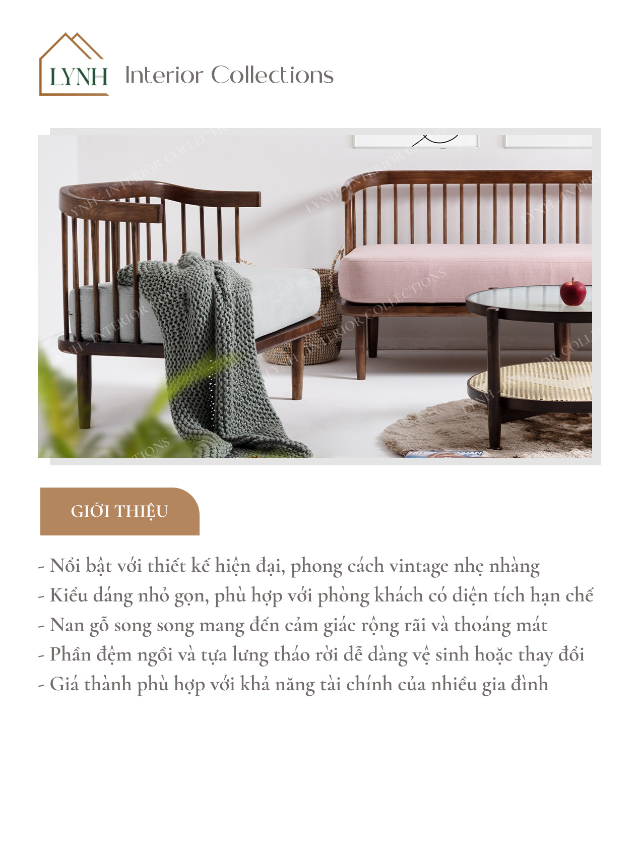 Bộ sofa Rustic gỗ nổi bật với vẻ đẹp nhẹ nhàng, Vintage tạo nên điểm nhấn ấn tượng cho không gian. Bên cạnh đó, thiết kế nhỏ gọn, thanh mảnh vô cũng phù hợp với những căn chung cư có diện tích hạn chế.