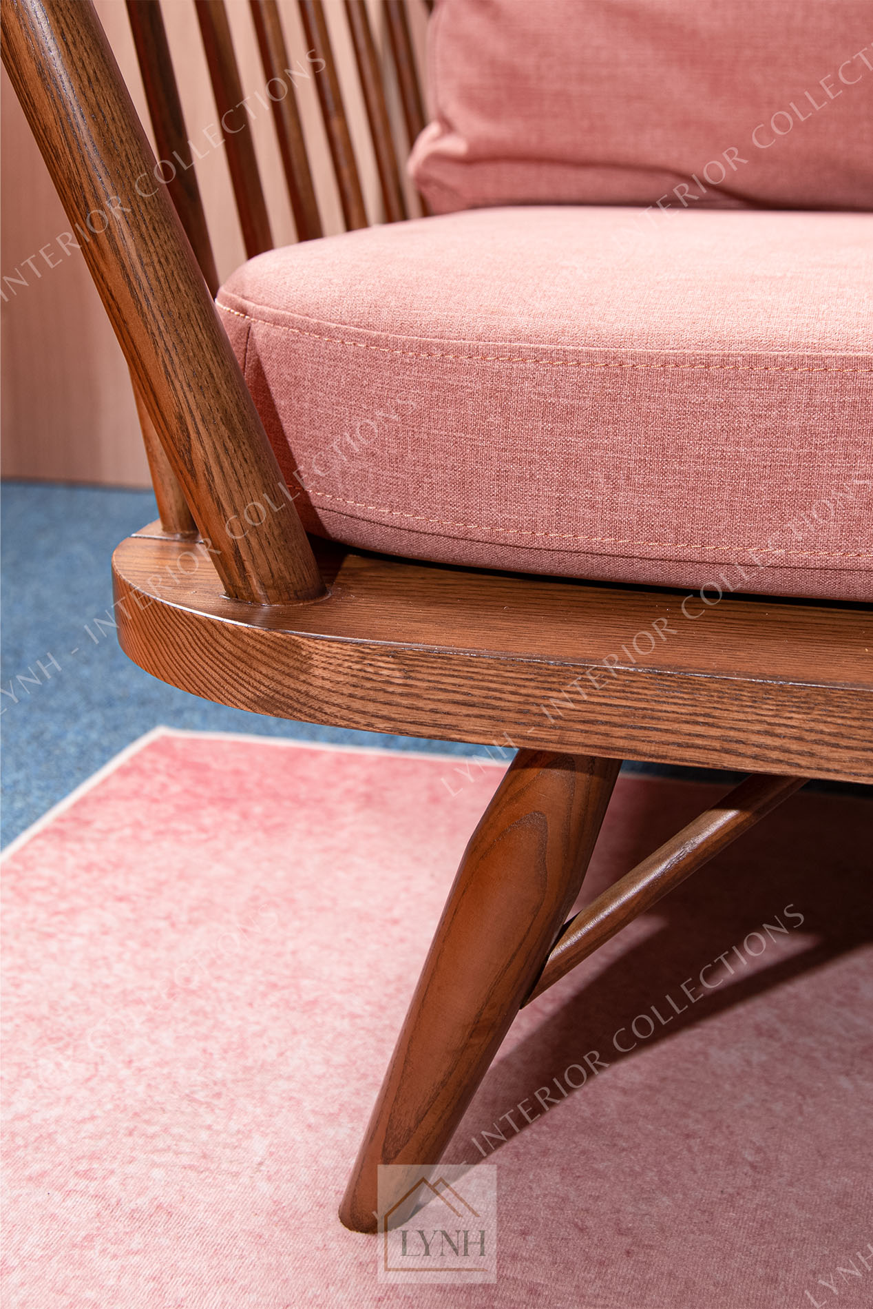 Chất liệu gỗ sử dụng là gỗ tần bì mang đến sự ấm áp, gần gũi tạo nên một không gian chân thật. Các họa tiết trang trí sofa tay cong cực kì đơn giản, thường chỉ là những đường nét cong, nét bo tròn, tuy nhiên vẫn giữ được những nét mộc mạc đặc trưng của thiên nhiên.