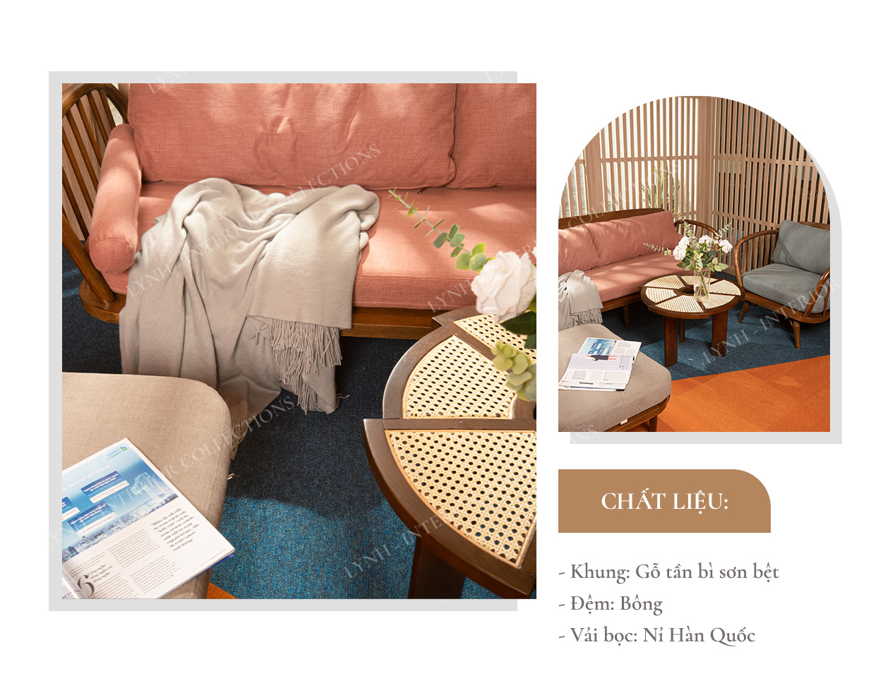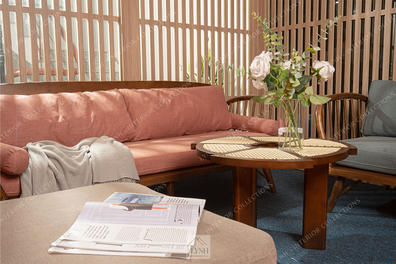 Bộ sofa gỗ rustic là combo hoàn hảo cho phòng khách của mọi gia đình. Mua sản phẩm tại Lynh, khách hàng có thể tùy chỉnh kích thước, vật liệu và màu sắc đệm để phù hợp với thực tế và nhu cầu sử dụng.
