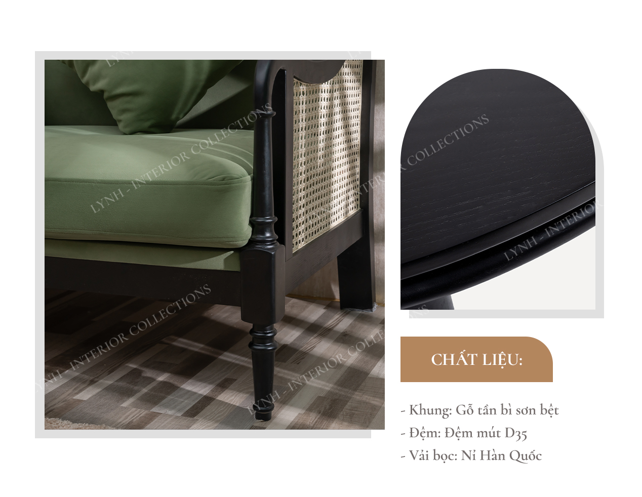 Bộ sản phẩm sofa và bàn trà Indochine tại Lynh sở hữu thiết kế hiện đại và mang đậm hơi thở Đông Dương. Mang đến cho không gian phòng khách nhà bạn vẻ đẹp sang trọng và vô cùng mới mẻ.