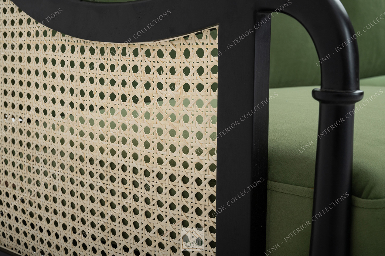 Trong đó, sofa indochine là sự kết hợp giữa chất liệu gỗ tự nhiên và mây đan mang đến sự mộc mạc và vô cùng gần gũi. Phần khung gỗ tần bì chắc chắn, kết hợp với đó là đệm ngồi và tựa lưng có thể tháo rời, dễ dàng thay đổi màu sắc của đệm theo sở thích.