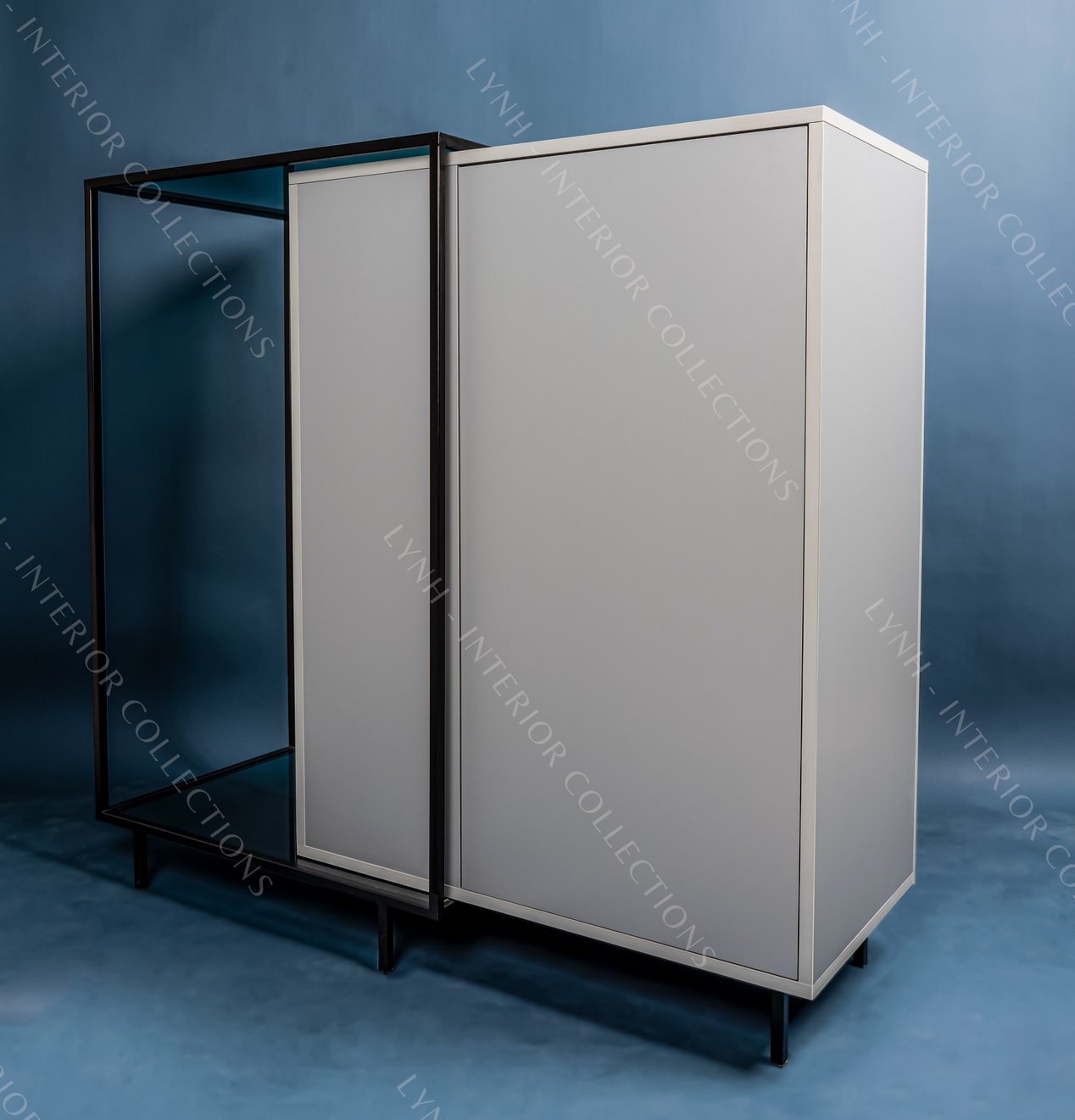 Bộ tủ kệ khung sắt pha kính được sản xuất từ các loại vật liệu cao cấp.