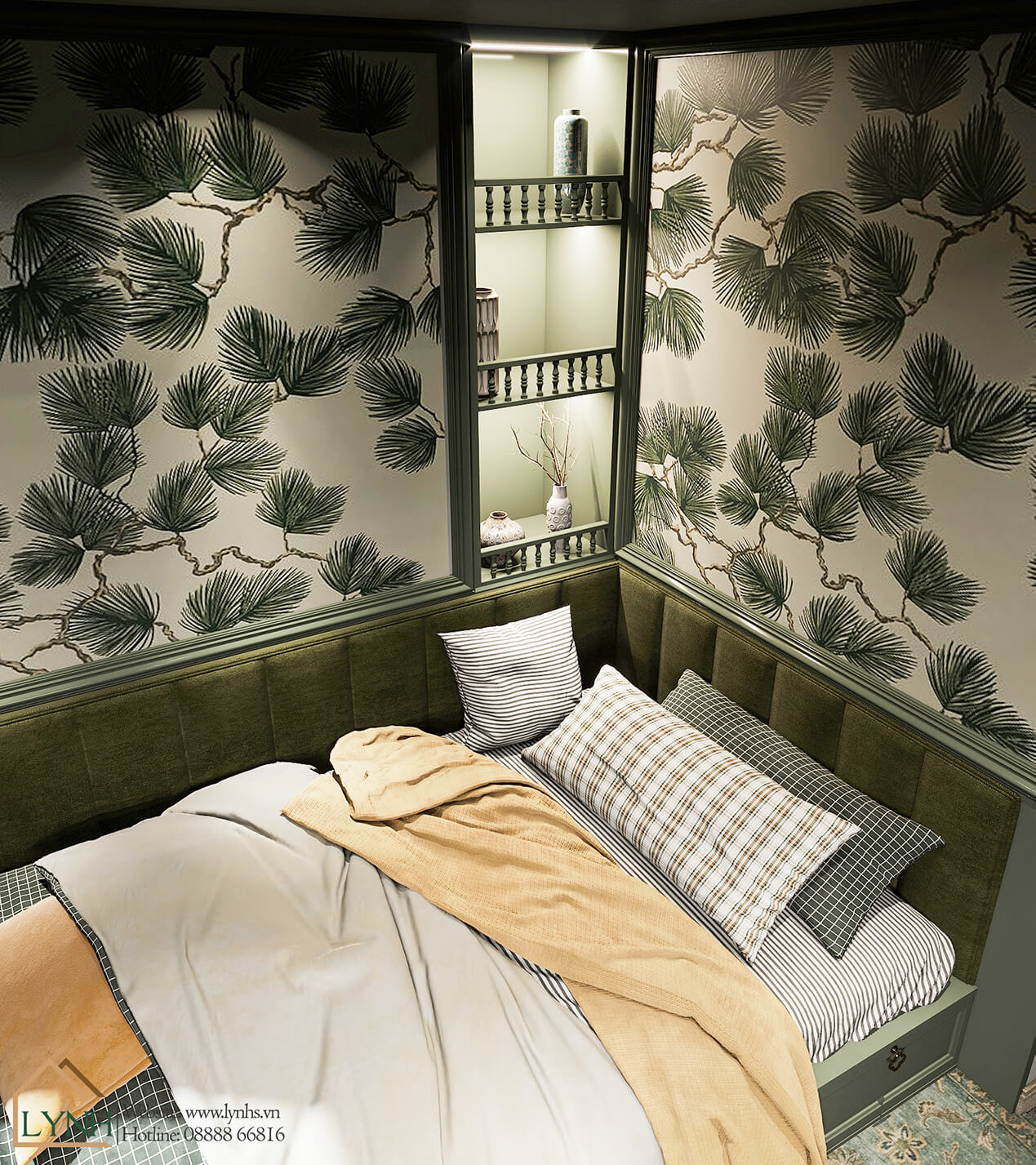 Phòng ngủ 3 cũng là căn phòng có diện tích khiêm tốn nhất, tuy nhiên căn phòng này lại được ưu ái với chiếc giường nhìn ra cửa sổ lớn và được ôm trọn trong 2 bức tường. Do đó chủ nhân của căn phòng sẽ được gia tăng tối đa tính riêng tư và sự thông thoáng khi sử dụng. Đây có lẽ là bố trí phòng được yêu thích nhất trong 3 phòng ngủ của phong cách này.