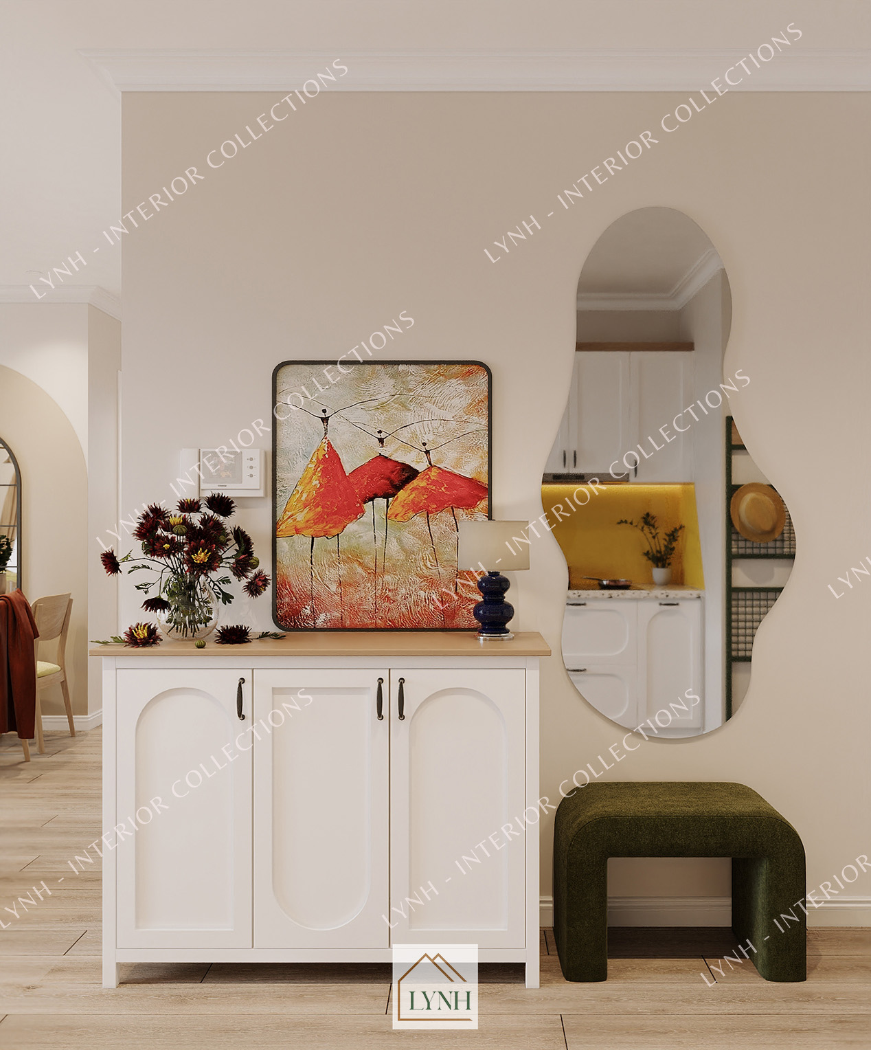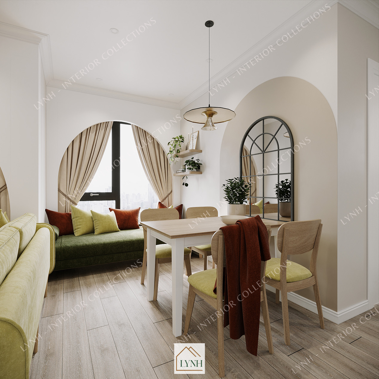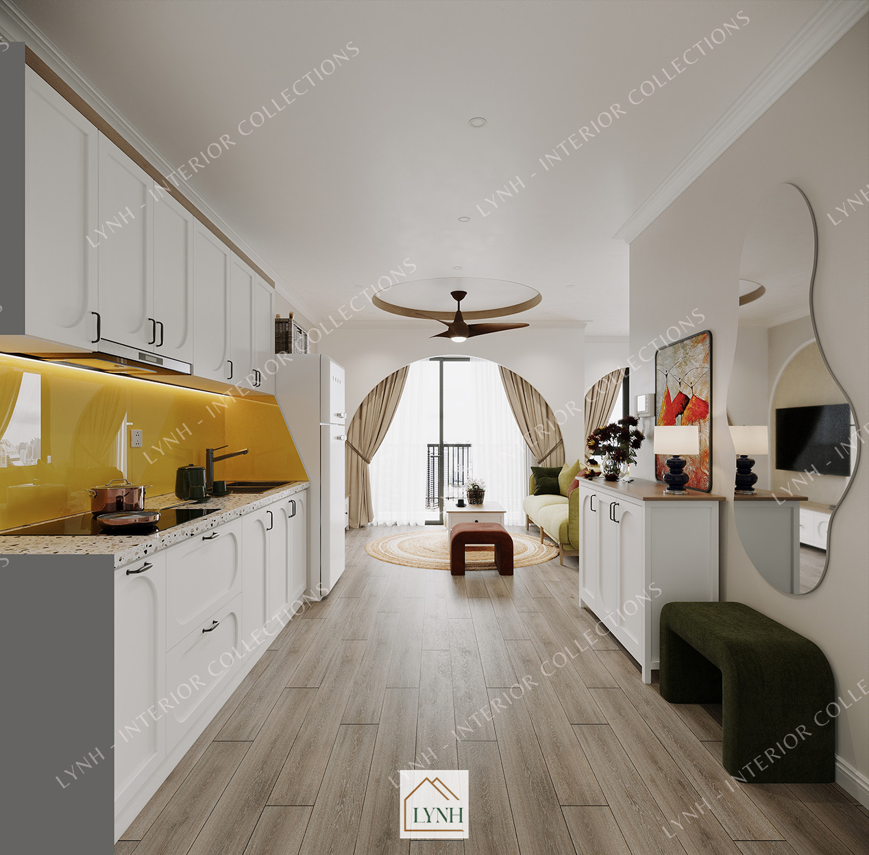 Được lấy cảm hứng từ phong cách trang trí nội thất của thập niên 1950 – 1960 tại Mỹ. Các kiến trúc sư Lynh đã mang đến một concept với sự pha trộn giữa các yếu tố cổ điển và hiện đại. Mang đến cho không gian căn hộ dịch vụ sự mới mẻ độc đáo và đầy phong cách.