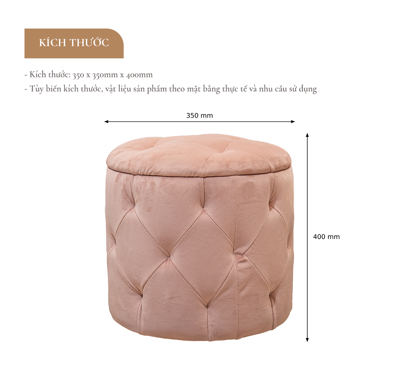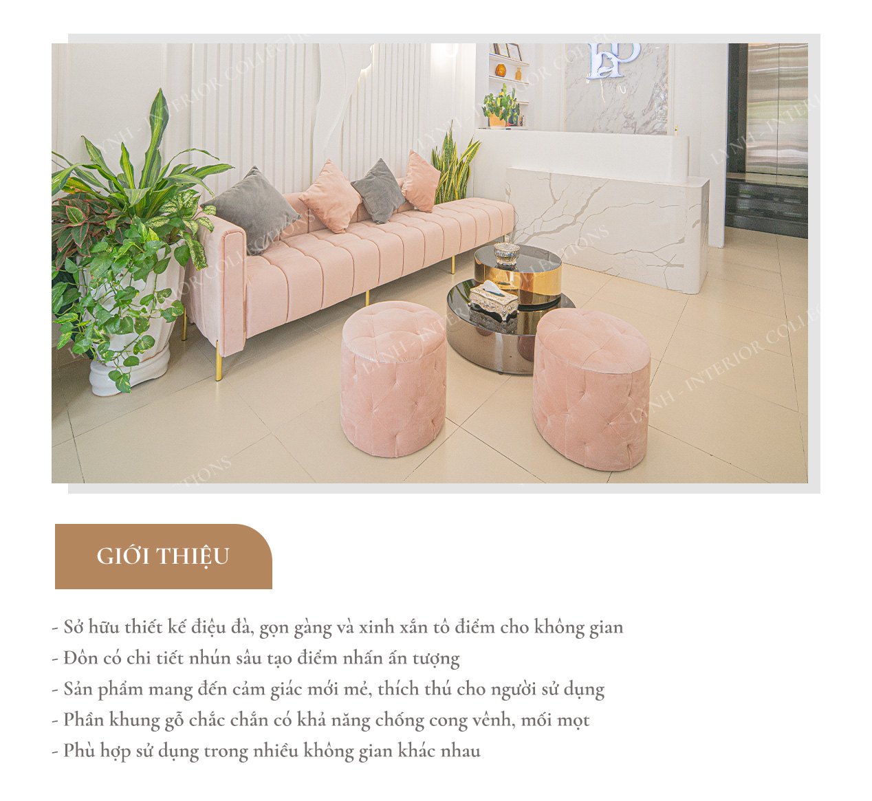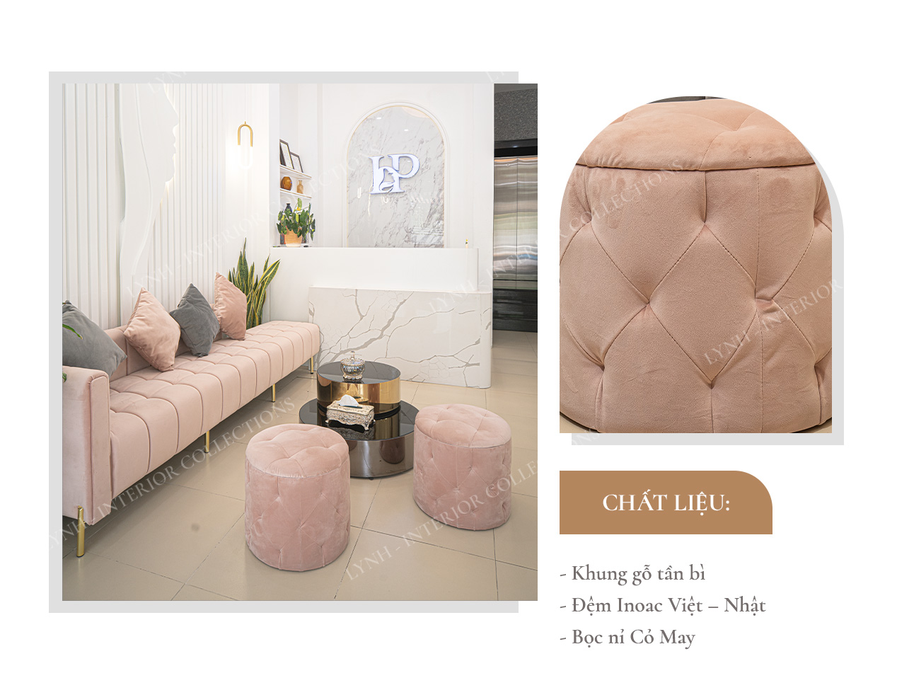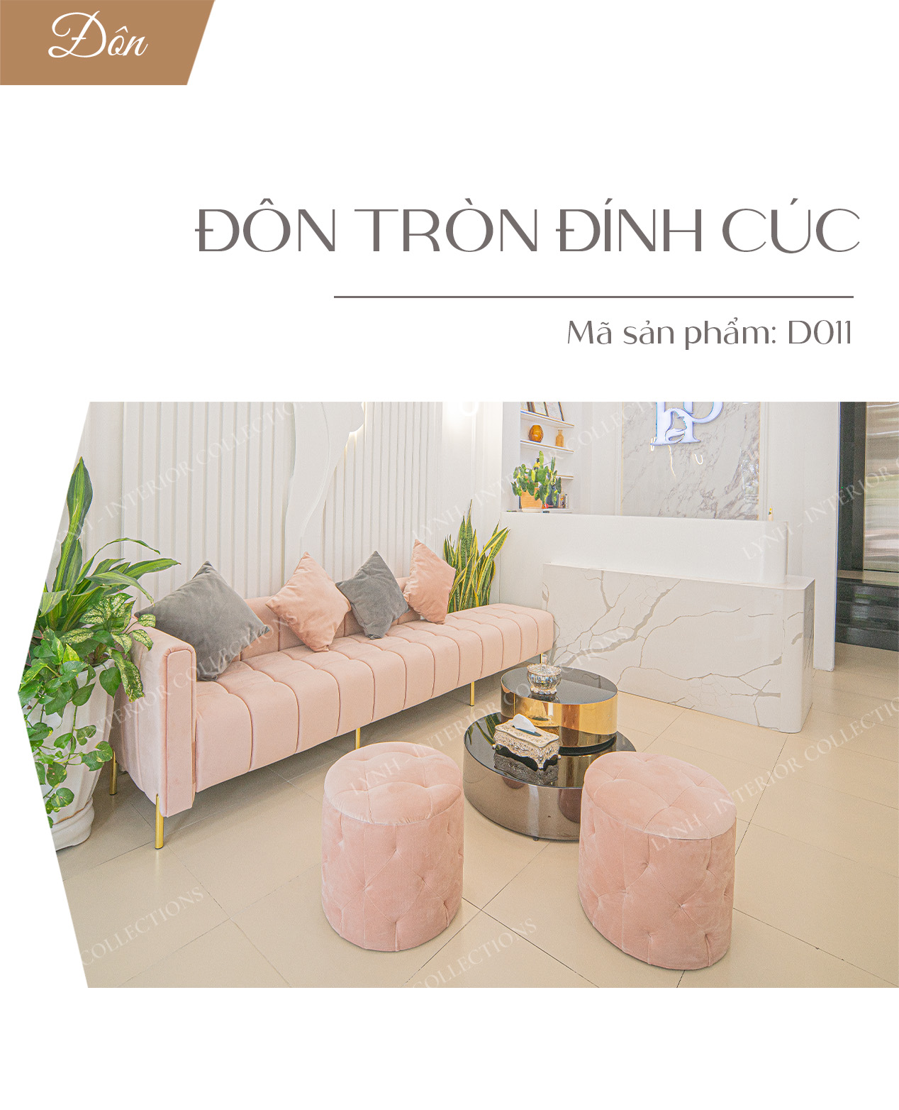 Sản phẩm đôn tròn đính cúc được sử dụng trong nhiều không gian nội thất khác nhau có thể kể đến như: phòng khách, phòng ngủ, phòng làm việc hoặc viện thẩm mỹ, spa,…