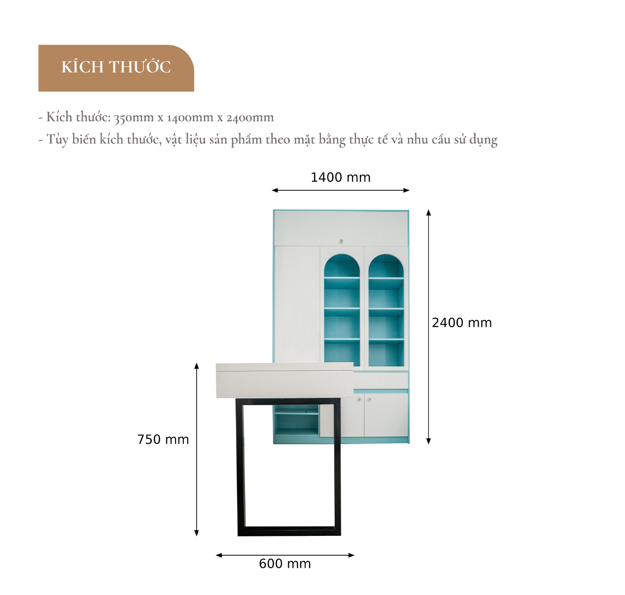 Kệ sách gỗ liền bàn học có phần tủ trang trí được chia ô hợp lý, giúp bé có thể trang trí không gian học tập của mình theo sở thích cá nhân. Điều này giúp vé thoải mái sáng tạo, phát triển và vẽ nên ước mơ của mình.