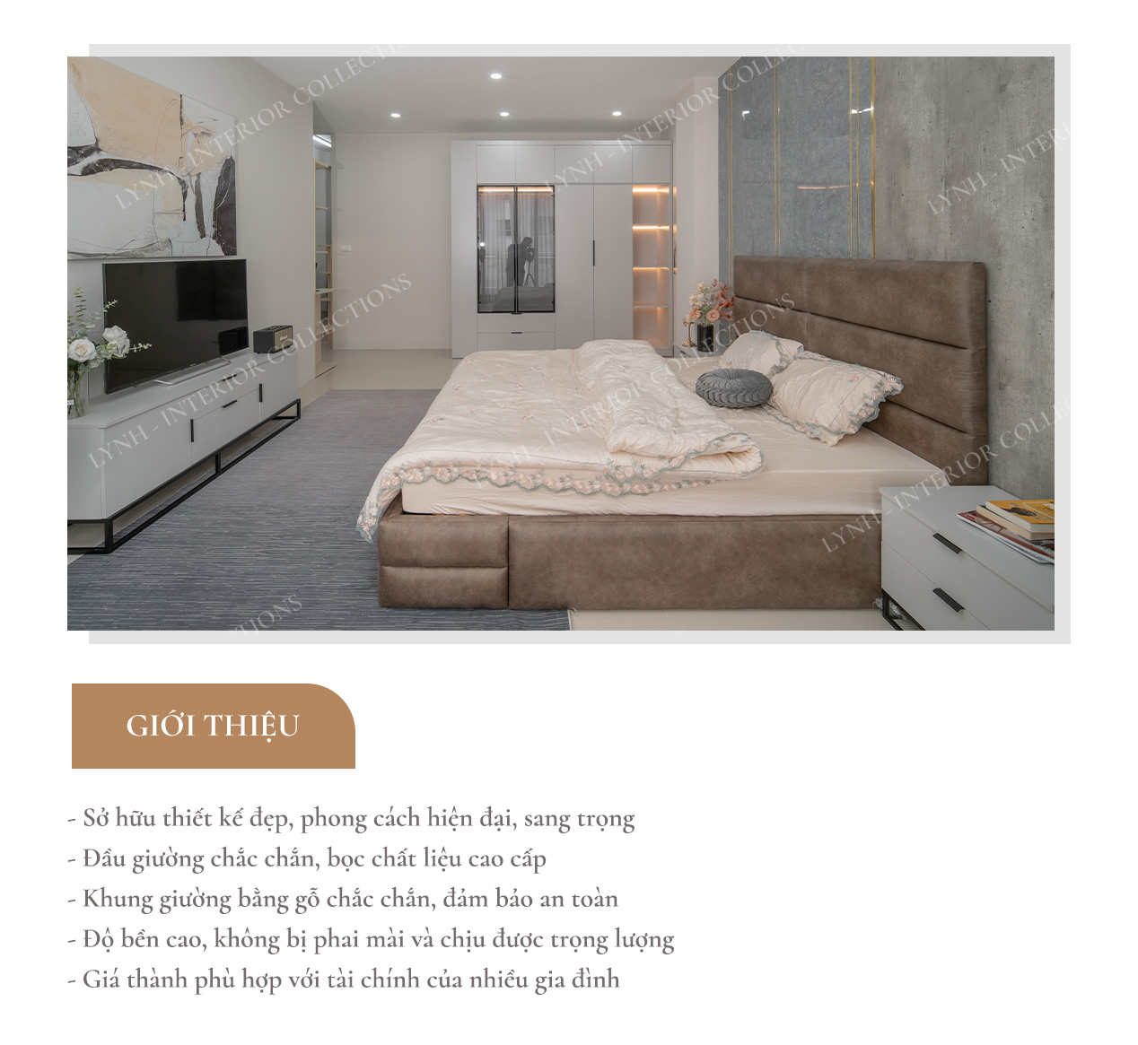 Với thiết kế đẹp, chất lượng tốt và có thể tùy biến về kích thước, vật liệu và màu sắc thì mẫu giường bọc nỉ đẹp của Lynh đang được rất nhiều khách hàng lựa chọn cho không gian phòng khách của mình.
