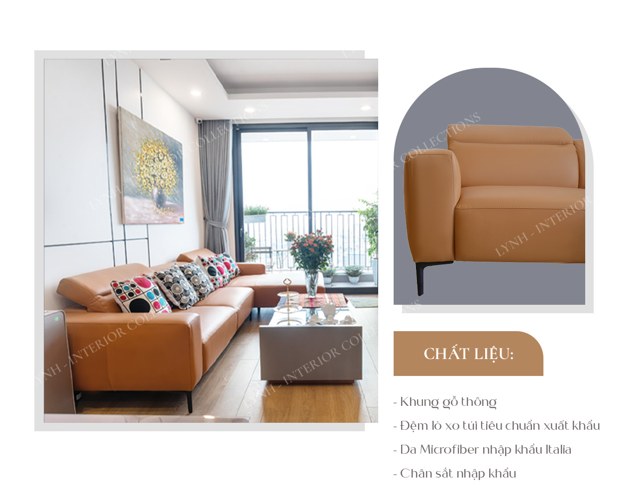 - Ảnh sản phẩm 100% là ảnh chụp thật tại LYNH, quý khách hàng có thể ghé showroom để trải nghiệm thực tế về chất lượng và mẫu mã sản phẩm. Hãy liên hệ với LYNH theo hotline 1900055585 để được tư vấn miễn phí về sofa và những sản phẩm nội thất khác nhé!