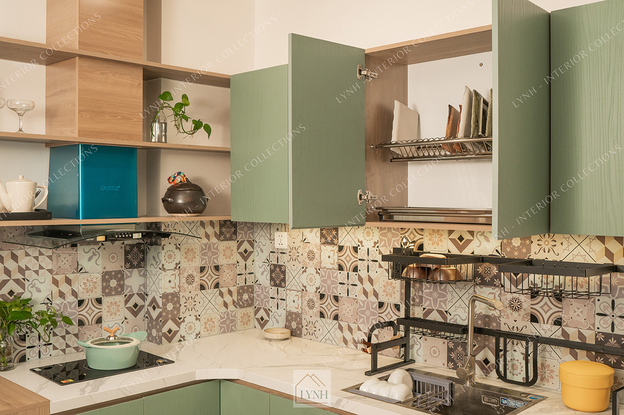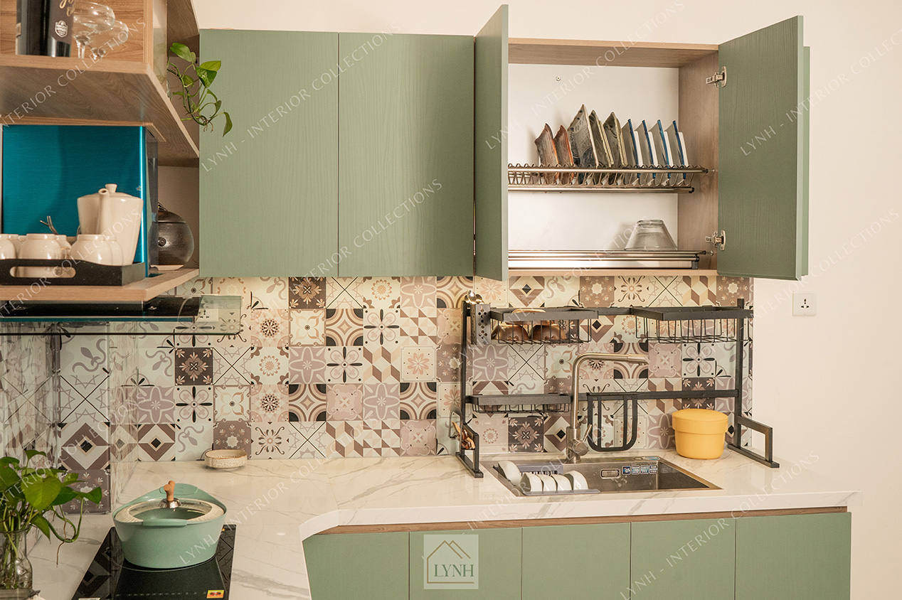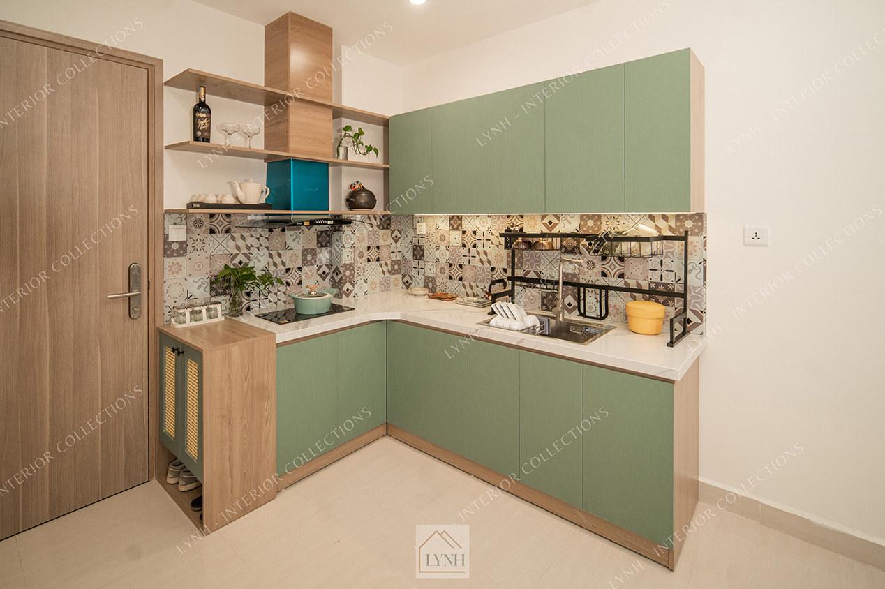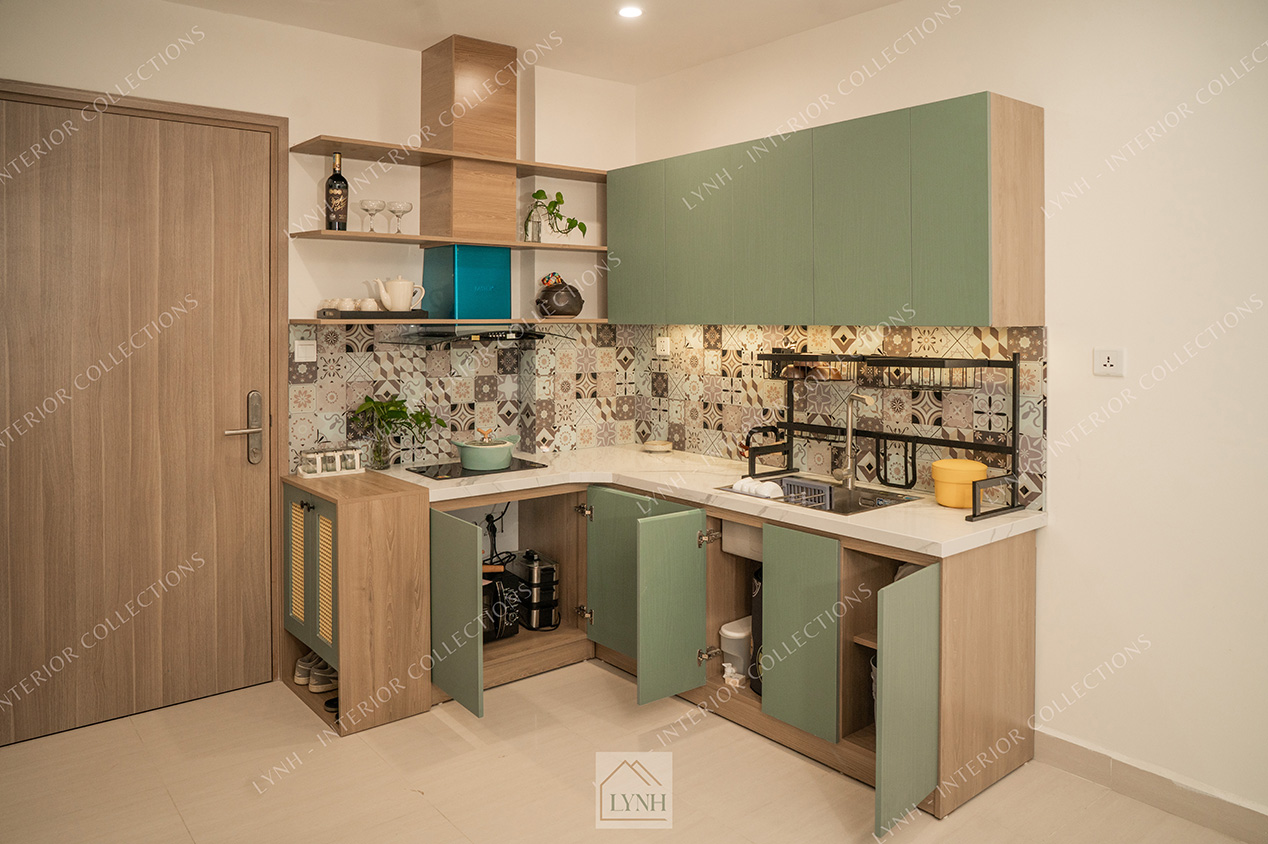 Với phong cách thiết kế độc đáo cũng công năng sử dụng cơ bản đầy đủ, mẫu tủ bếp chữ L nhỏ đẹp này của Lynh được rất nhiều khách hàng kinh doanh căn hộ dịch vụ lựa chọn để giúp không gian homestay của họ trở nên thu hút khách hàng hơn.