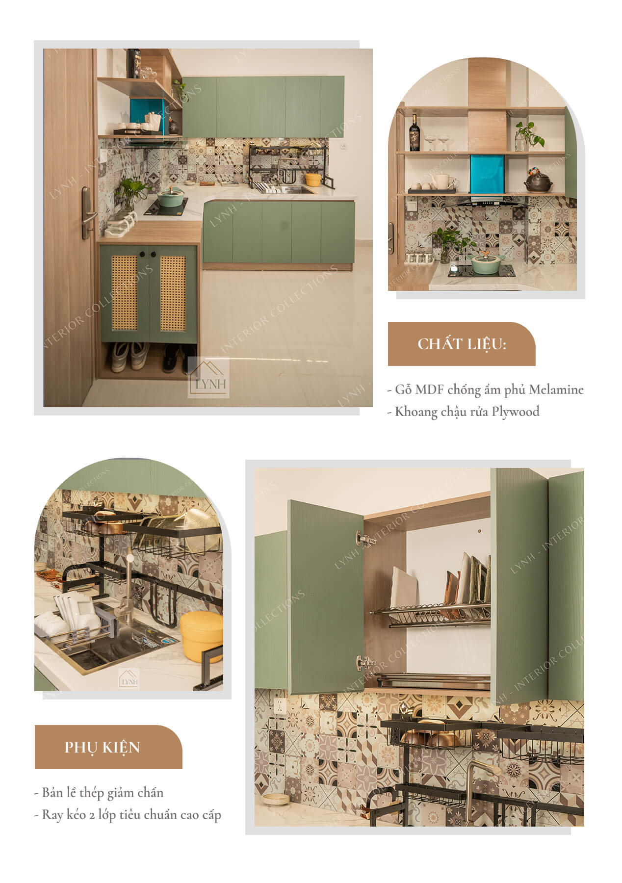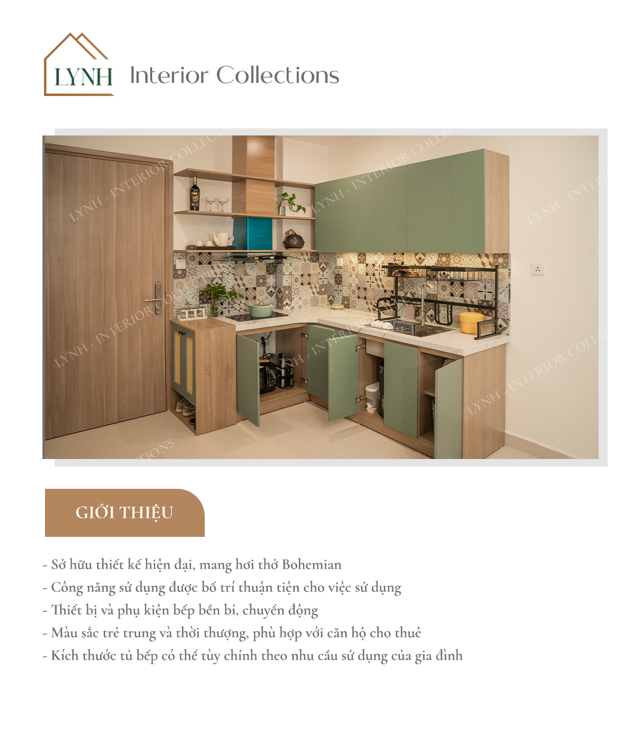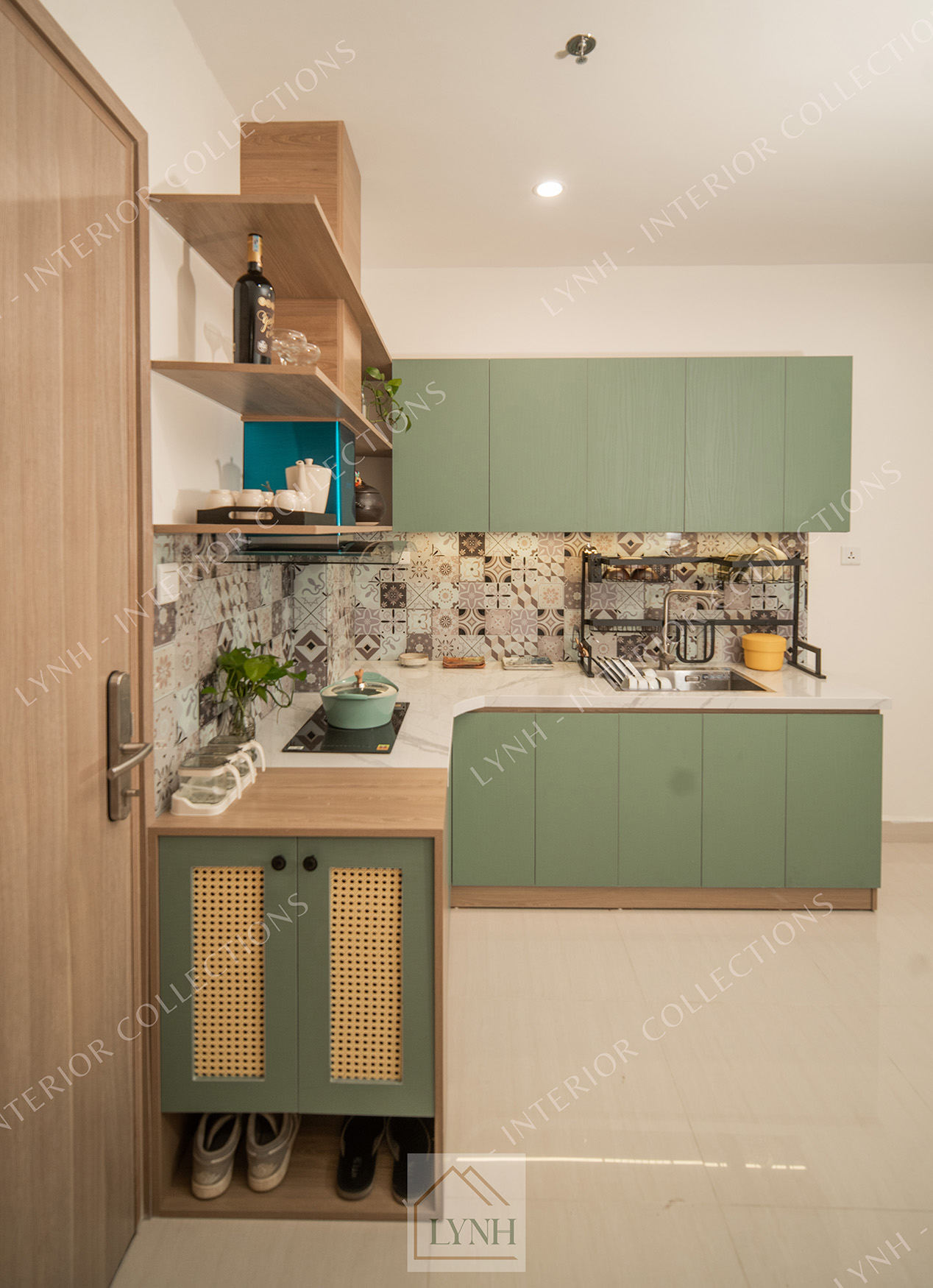 Với phong cách thiết kế độc đáo cũng công năng sử dụng cơ bản đầy đủ, mẫu tủ bếp chữ L nhỏ đẹp này của Lynh được rất nhiều khách hàng kinh doanh căn hộ dịch vụ lựa chọn để giúp không gian homestay của họ trở nên thu hút khách hàng hơn.