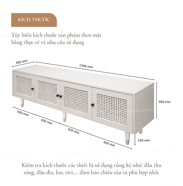 Tại Lynh, kệ tivi được sản xuất với kích thước vô cùng đa dạng và có thể đặt trong nhiều không gian khác nhau từ nhỏ đến lớn. Chúng tôi sẽ dựa trên mặt bằng thực tế và nhu cầu sử dụng của khách hàng để có thể “may đo” ra một sản phẩm ưng ý nhất. Đảm bảo khi khách hàng nhận được sản phẩm sẽ cảm thấy vô cùng hài lòng về cả chất lượng và công năng sử dụng.
