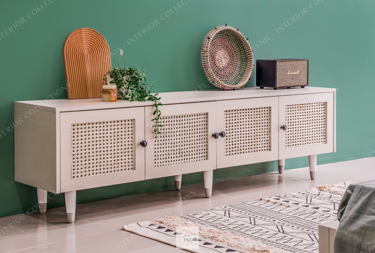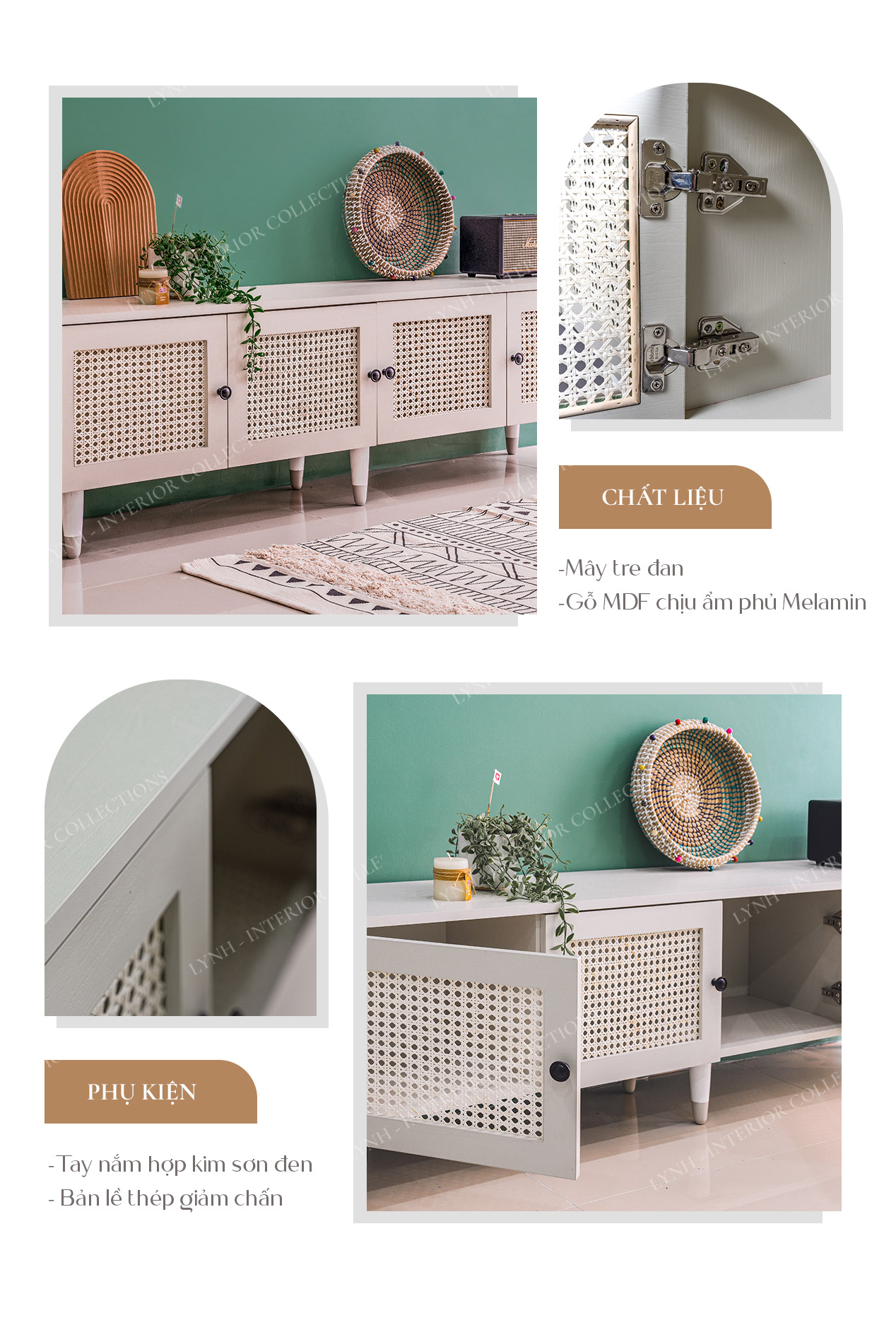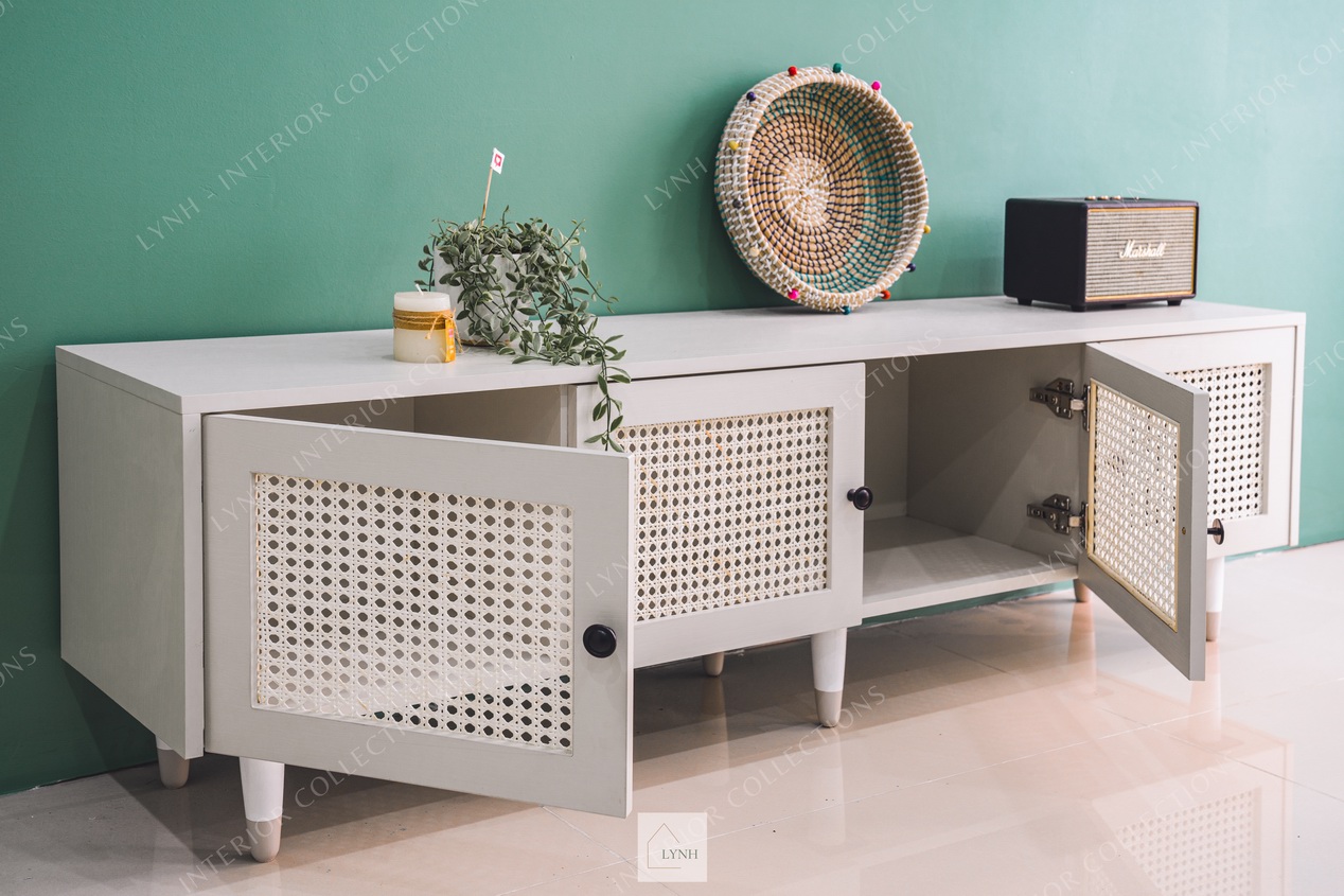 Mẫu kệ tivi mây là sản phẩm hot nhất tại LYNH Interior được làm bằng gỗ MDF phủ melamine kết hợp với mây đan mắt cáo. Những ưu điểm khiến mẫu sản phẩm được yêu thích như: