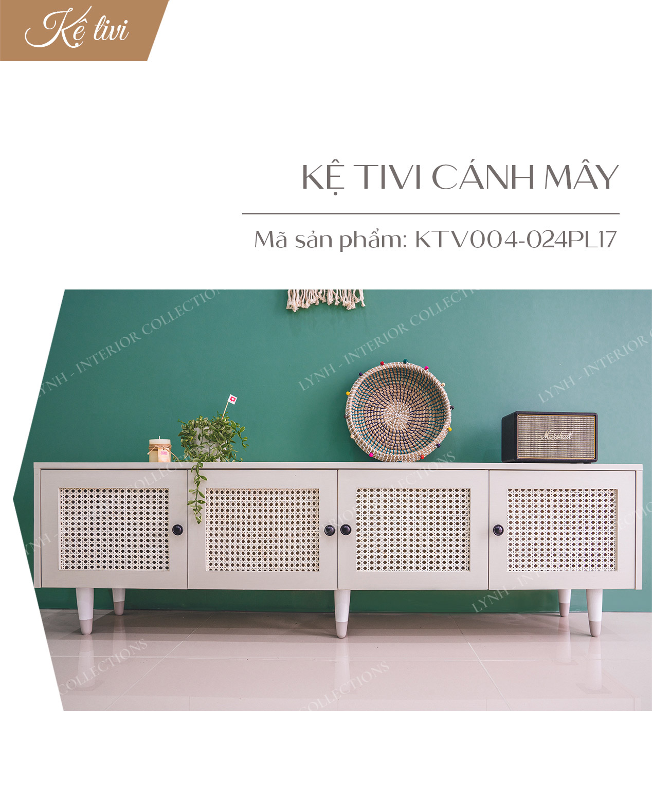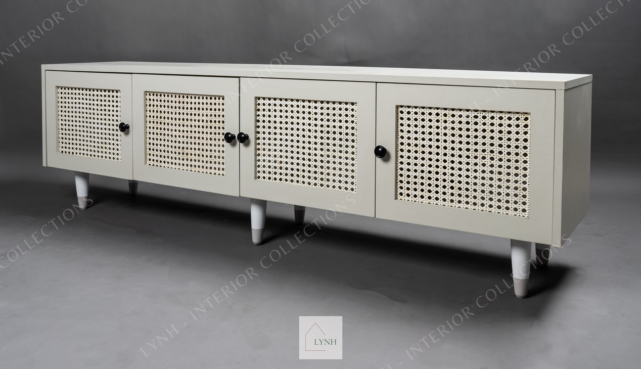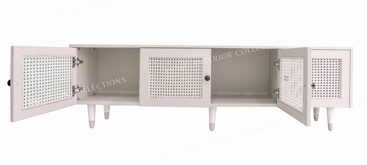 Mẫu kệ tivi mây là sản phẩm hot nhất tại LYNH Interior được làm bằng gỗ MDF phủ melamine kết hợp với mây đan mắt cáo. Những ưu điểm khiến mẫu sản phẩm được yêu thích như: