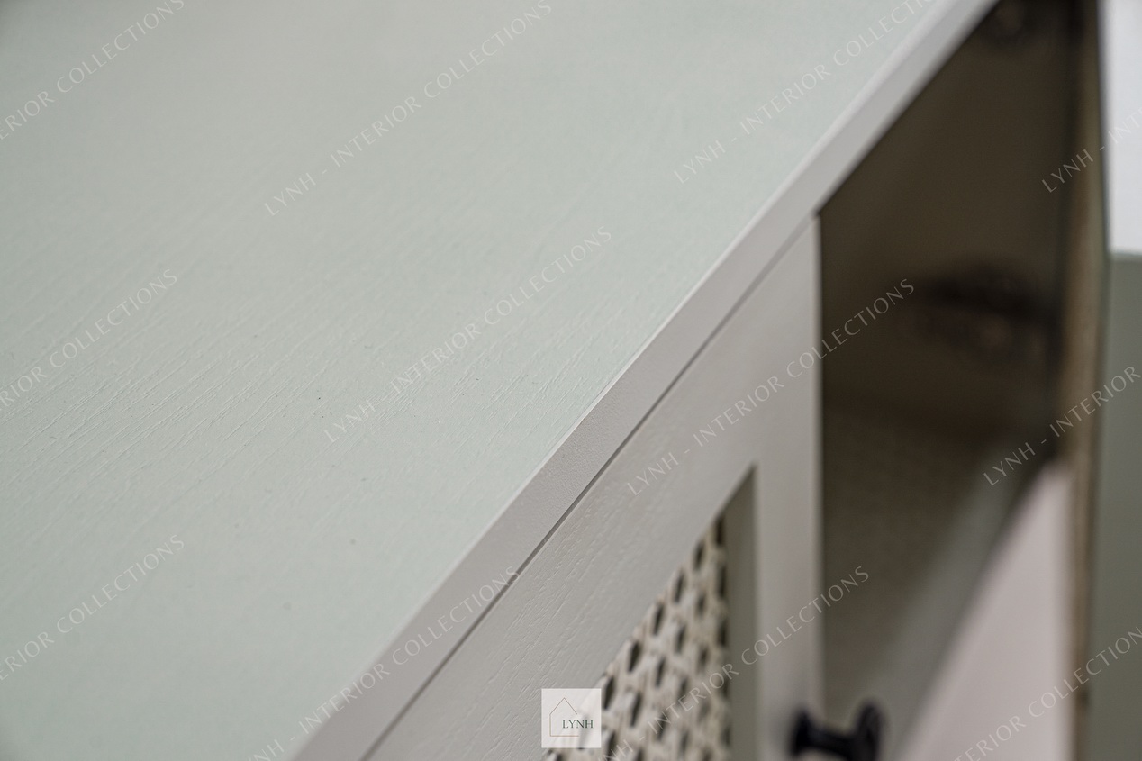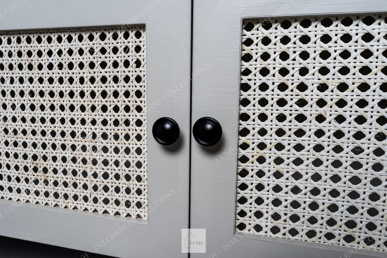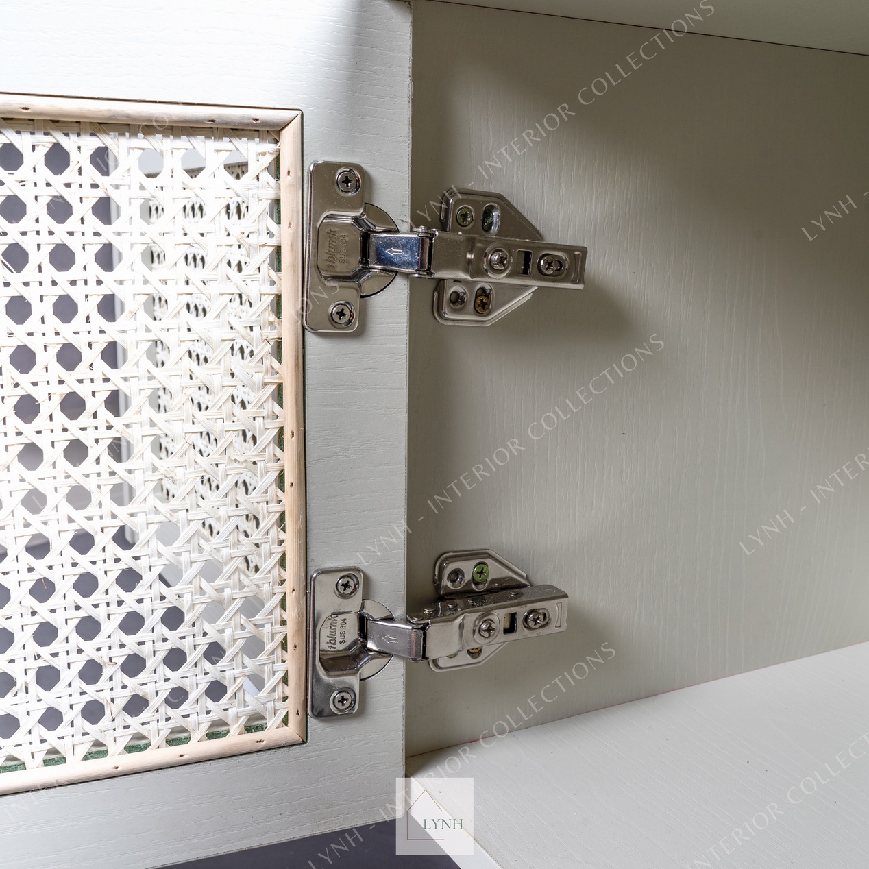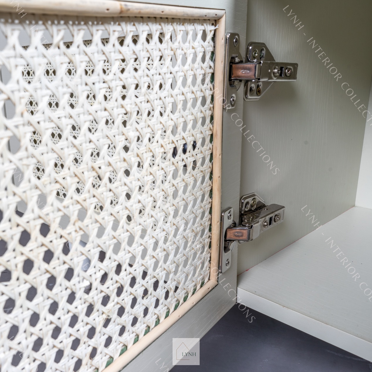 - Cánh tủ kết hợp với mây đan tạo nên sự thông thoáng đồng thời là điểm nhấn cho sản phẩm.