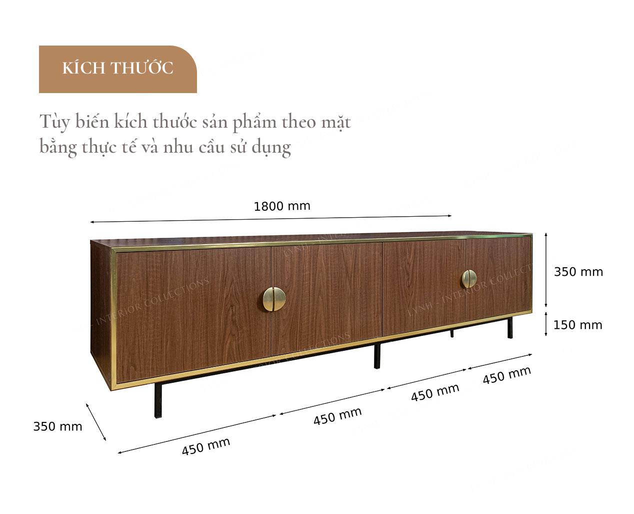 Sản phẩm sở hữu đường nét gia công tinh tế và màu sắc đặc biệt giúp căn phòng khách trở nên nổi bật hơn. Tủ kệ tivi nhỏ gọn KTV012 được thiết kế 4 ngăn tủ bằng nhau cho không gian lưu trữ rộng rãi và gọn gàng. Màu sắc, chất liệu và kích thước kệ tủ tivi có thể tùy chỉnh theo như cầu sử dụng của khách hàng.