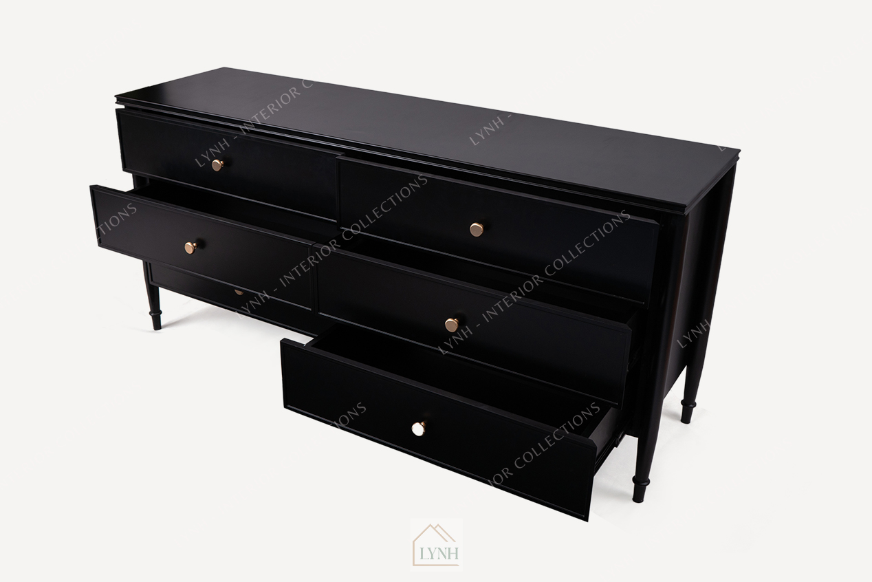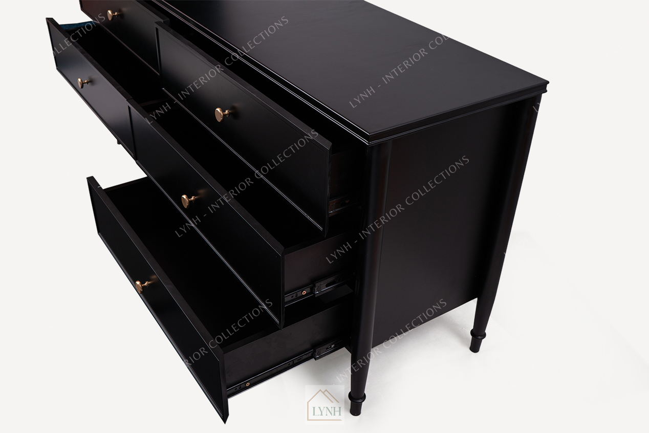 Kệ tivi phong cách Indochine được trang bị nhiều ngăn kéo để đồ, giúp tăng không gian lưu trữ và việc sắp xếp cũng trở nên gọn gàng hơn. Mỗi ngăn kéo đều có tay nắm hợp kim hình tròn làm điểm nhấn ấn tượng. Mẫu kệ tivi độc đáo này cũng dễ dàng phối hợp với bất kỳ không gian nội thất Indochine nào.
