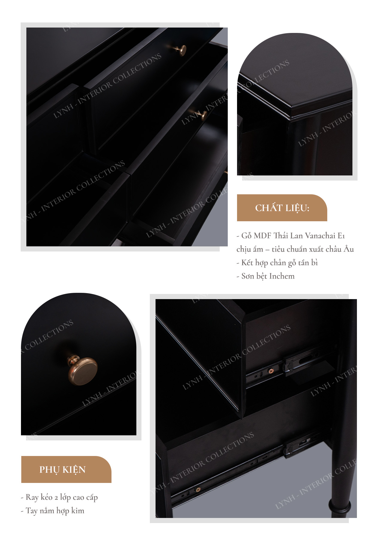 Kệ tivi Indochine của Lynh không chỉ là sản phẩm nội thất làm đẹp cho không gian mà nó còn mang đến sự tiện nghi và đáp ứng được các yêu cầu sử dụng của người dùng. Mẫu kệ tivi phong cách Đông Dương này là sự pha trộn giữa nét văn hóa Á Đông với sự hiện đại cách tân của kiến trúc Pháp. Sự pha trộn này vừa tinh tế, đồng thời thể hiện được bản sắc dân tộc cùng với vẻ đẹp lãng mạn đậm chất Pháp.