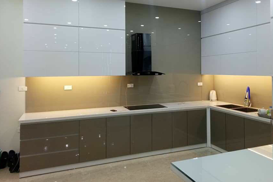Những năm gần đây, kính cường lực ốp bếp trở thành vật liệu ốp được ưa chuộng nhất trong thị trường nội thất. So với các loại vật liệu ốp là gạch và đá, kính ốp được cho là dễ lau chùi nhất, độ bền trên 10 năm, hạn chế vết xước và gần như không bị đổi màu theo thời gian.