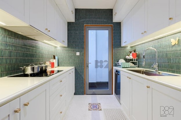 Dùng gạch thẻ để ốp tường bếp hiện nay được khá nhiều người ưa chuộng vì tính thẩm mỹ cao. Kiểu dáng, màu sắc của các loại gạch cũng khá đa dạng, bắt mắt, giúp người dùng dễ dàng thiết kế bếp theo ý sở thích cá nhân.