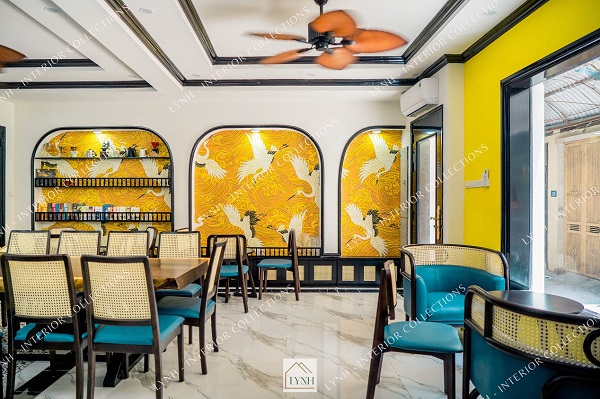 Những thiết kế nhà hàng hay quán café theo phong cách Indochine mang đến một không gian sang trọng và độc đáo. Với những món đồ nội thất làm từ chất liệu gỗ và mây tre đan, tạo nên một không gian ấm cúng, gần gũi.