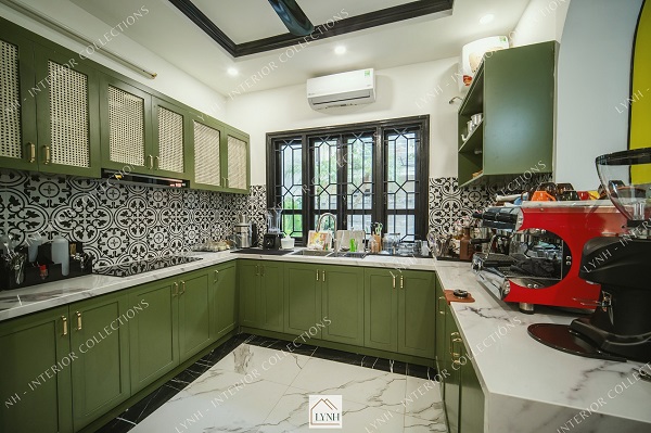 Ngoài ra, gia chủ nên chú ý đến việc sử dụng ánh sáng giúp tạo điểm nhấn và mang lại sự hài hòa – thống nhất cho toàn bộ không gian bếp. Bên cạnh đó, những trang thiết bị hiện đại như thiết bị bếp, kính ốp bếp, đồ gia dụng,… được kết hợp hài hòa và bố trí phù hợp để đảm bảo công năng sử dụng của bếp, tạo sự thuận tiện cho người nội trợ.