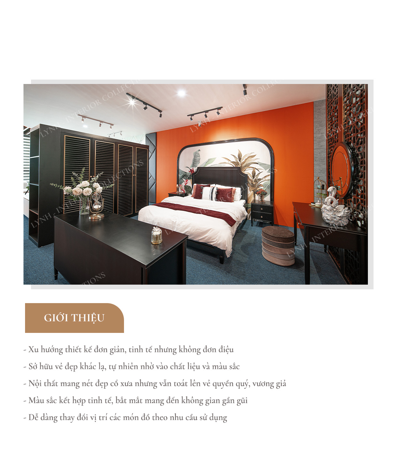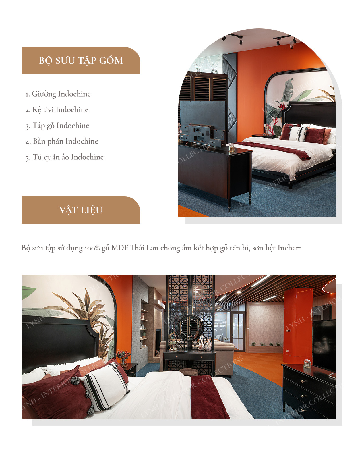 Vậy nên, Nội thất Lynh mang đến cho khách hàng bộ sưu tập phòng ngủ phong cách Đông Dương. Cùng tìm hiểu chi tiết bộ sưu tập nội thất của Lynh dưới đây nhé!