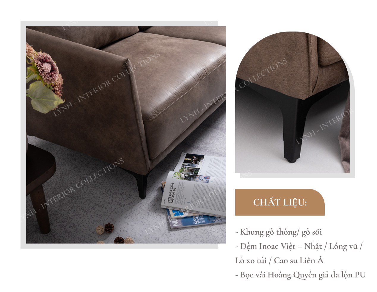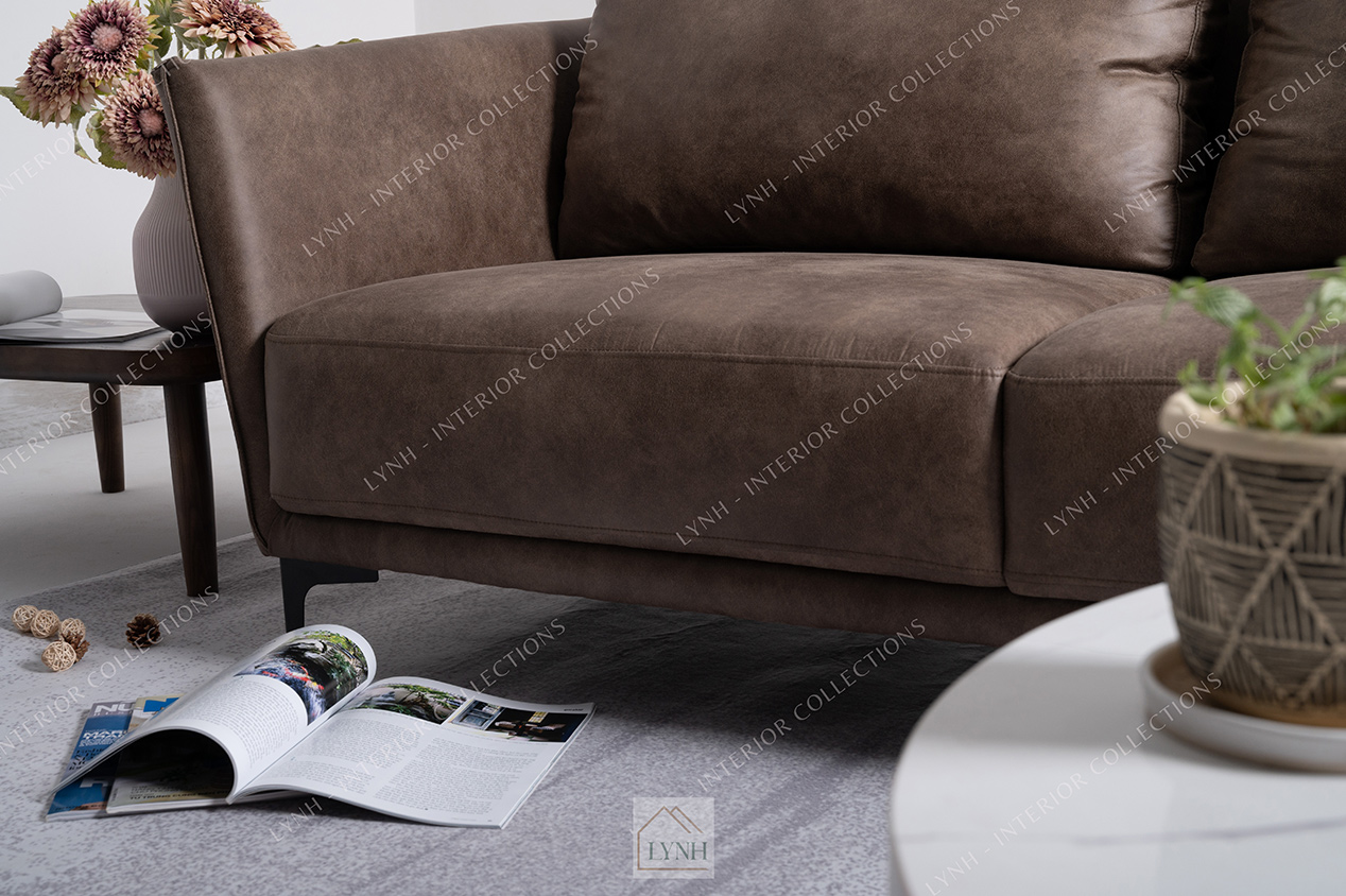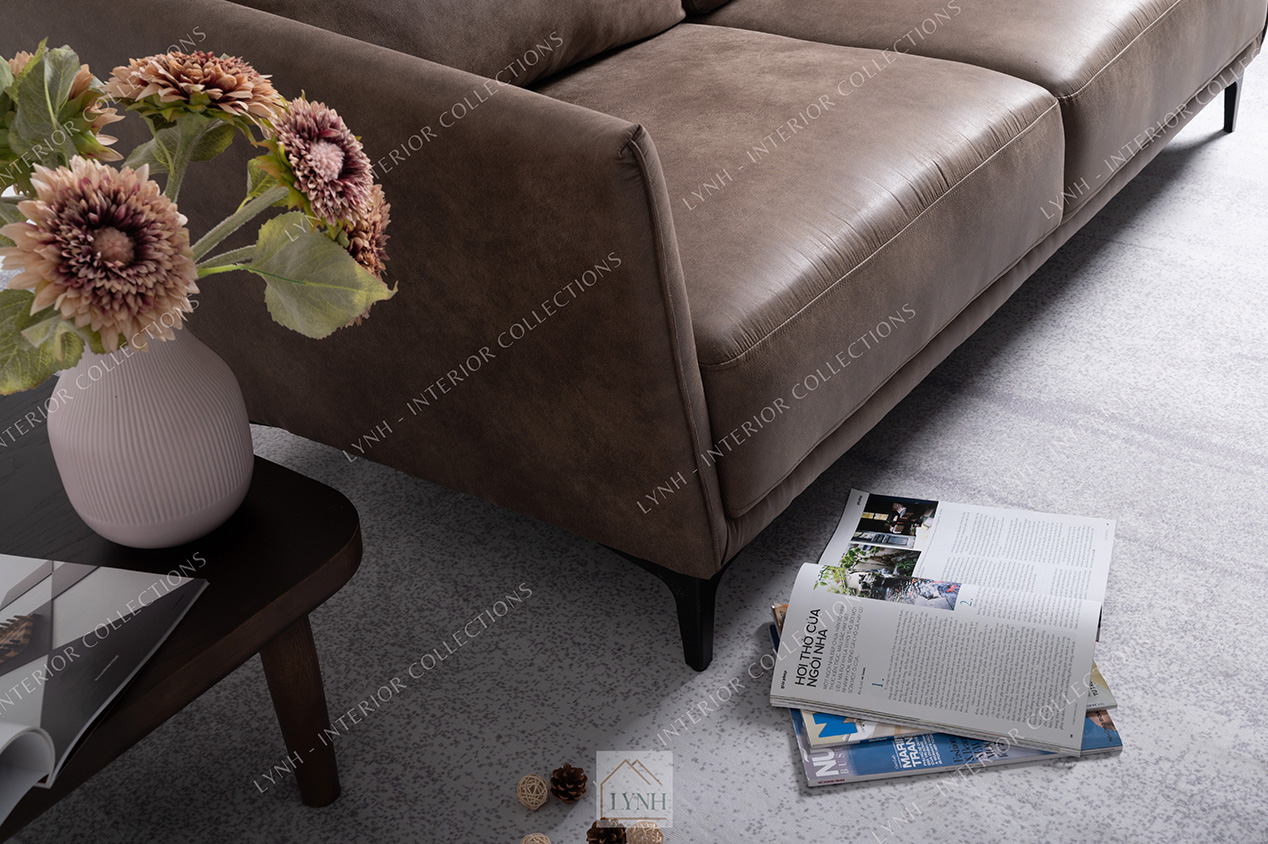 Phần chân sắt sơn tĩnh điện đen mang đến sự chắc chắn và vô cùng phù hợp với tone màu trầm của sofa. Ngoài ra, phần chân cao ráo giúp cho việc vệ sinh gầm ghế được dễ dàng hơn.