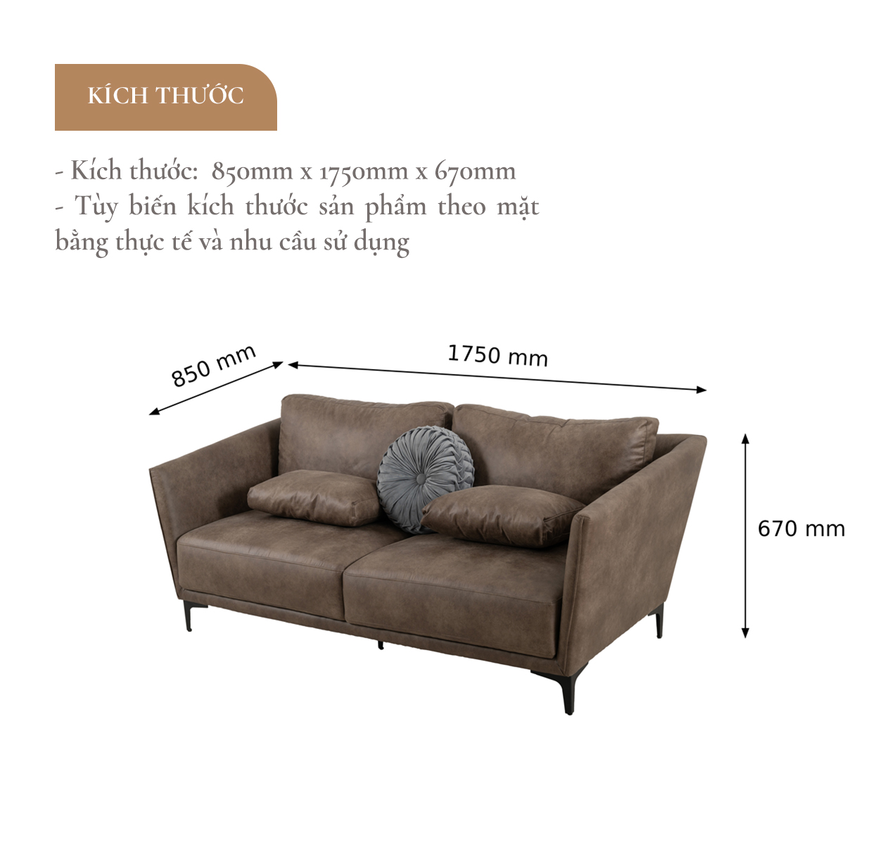 Sản phẩm được gia công tỉ mỉ từ đường nét, vỏ bọc, đệm ngồi, khung và chân ghế giúp sản phẩm có được tuổi thọ cao. Sự kết hợp giữa phần đệm cao cấp và lớp vải bọc bên ngoài, tạo cho người dùng cảm giác êm ái và thoải mái. Đây chắc chắn là chiếc ghế sofa 2 chỗ chân sắt giá rẻ dành cho những người yêu thích nội thất tao nhã, sang trọng.