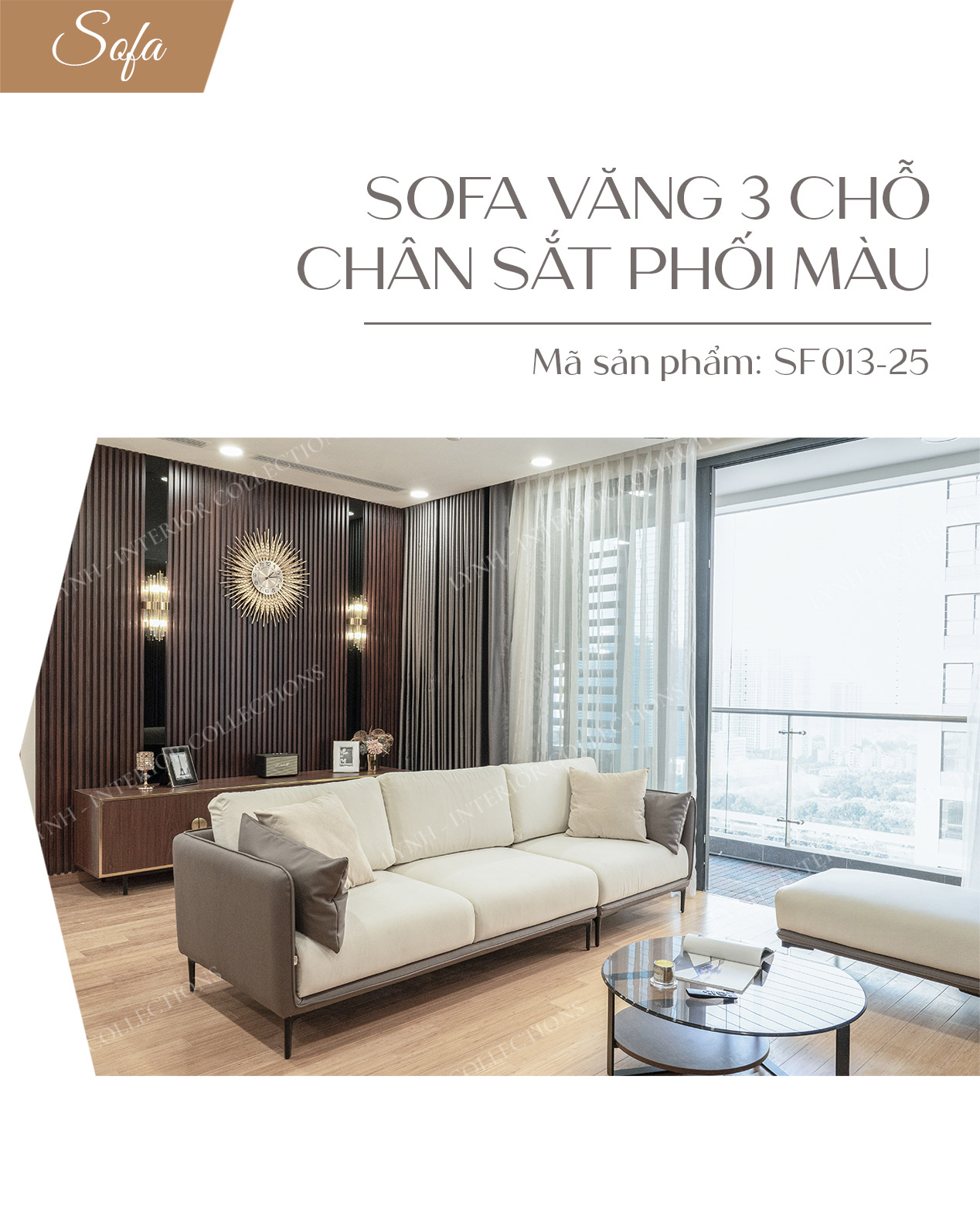 Kích thước của ghế sofa 3 chỗ SF013 đều được tùy chỉnh theo nhu cầu sử dụng và mặt bằng thực tế của khách hàng. Chính vì vậy, khách hàng chỉ cần đưa ra số đo mong muốn, LYNH sẽ đáp ứng tất cả các yêu cầu một cách hoàn hảo nhất.