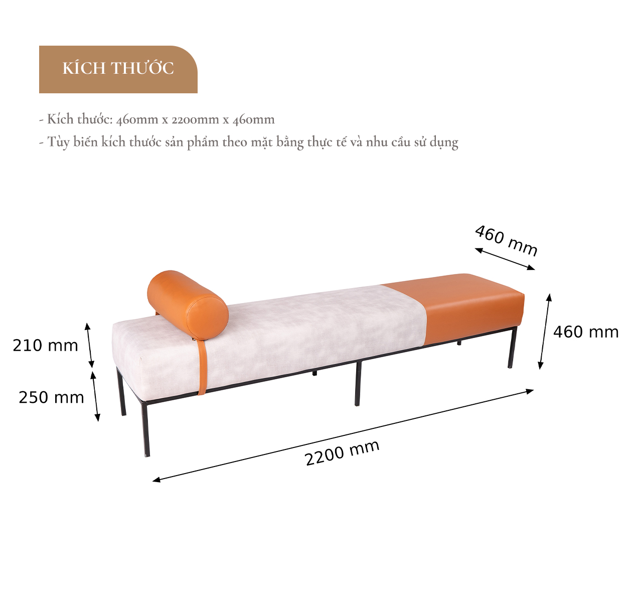Phần chân sắt sơn tĩnh điện cao cấp nhập khẩu, mang đến sự thanh thoát, gọn gàng nhưng vẫn đảm bảo được sự chắc chắn. Ghế sofa băng dài này có thể chịu được trọng lượng của 2-3 người ngồi.
