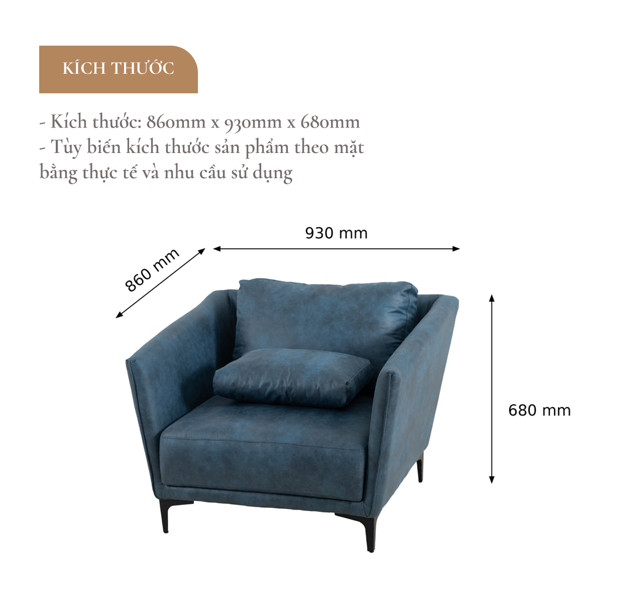 Mẫu sofa đơn chân sắt sở hữu thiết kế hiện đại, đường nét tinh tế, với những tone màu sang trọng. Chắc chắn đây sẽ là một trong những sự lựa chọn hoàn hảo cho phòng khách của bạn. Phần khung sườn sử dụng chất liệu cao cấp nên ghế sofa đơn vuông sở hữu độ bền cao và mang đến cảm giác thoải mái, an toàn khi sử dụng.
