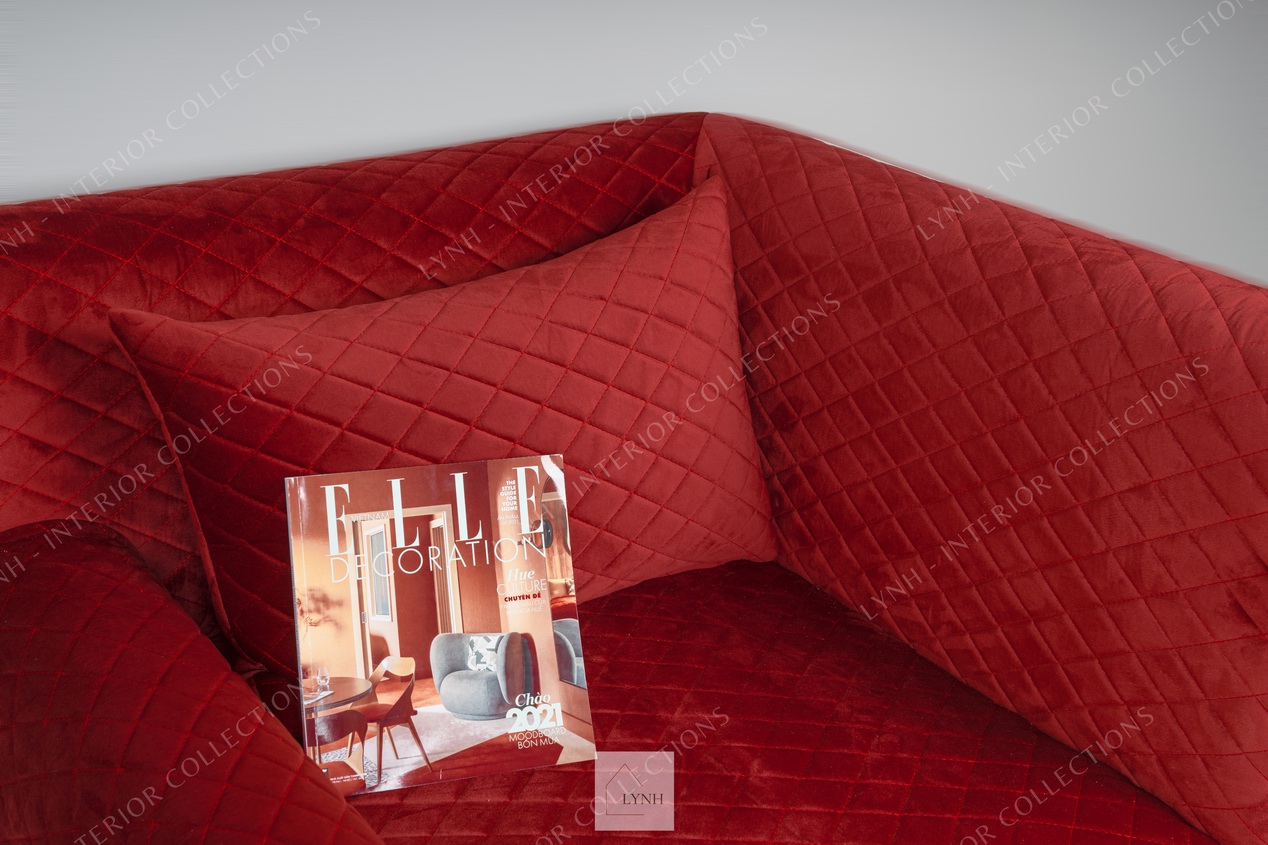 - Sofa màu đỏ tươi sáng, nổi bật được nhiều bạn trẻ yêu thích và tạo điểm nhấn cho cả không gian.