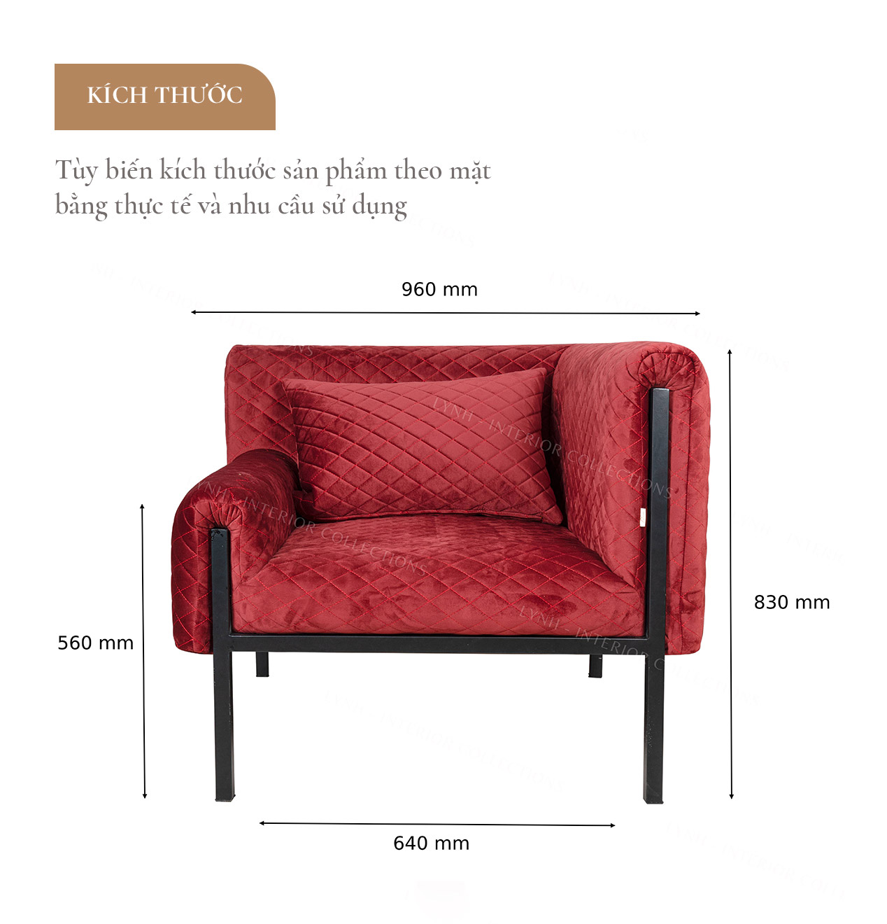 Sofa vuông đơn khung sắt tại LYNH sở hữu những đặc điểm vô cùng vượt trội như: