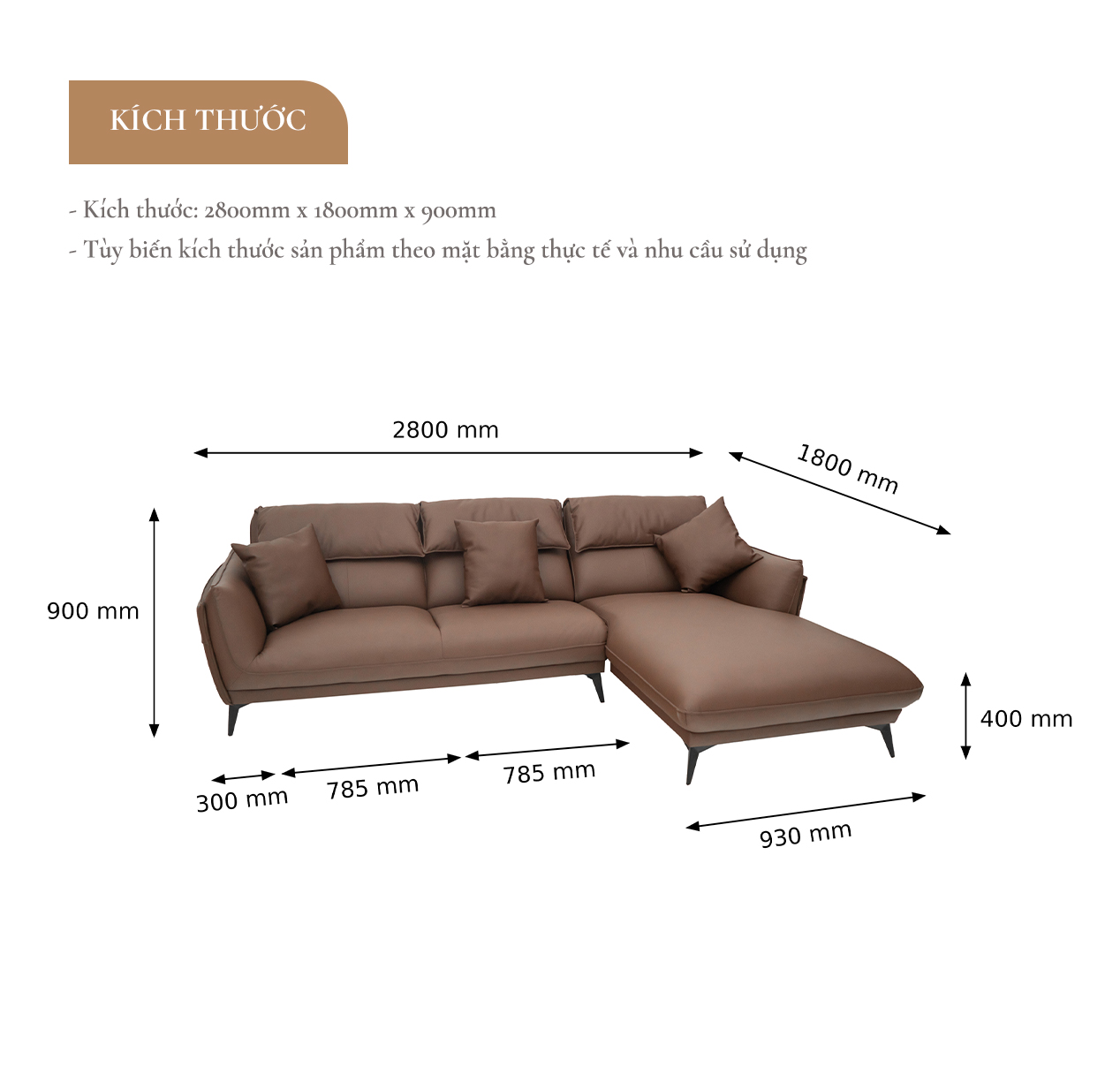 Phần tựa lưng của ghế được thiết kế thoải mái, độ cao vừa đủ cho việc ngả lưng và tựa đầu. Chắc chắn khi sử dụng sản phẩm sofa góc chữ L này khách hàng sẽ có được trải nghiệm hoàn hảo nhất.