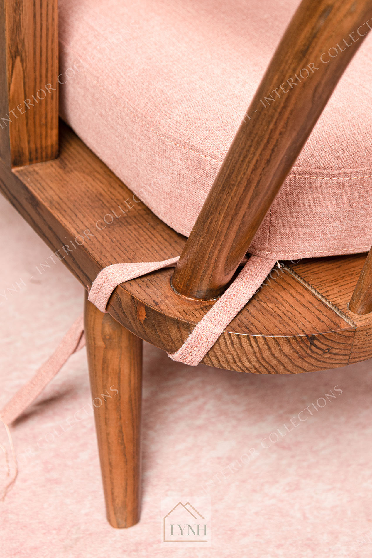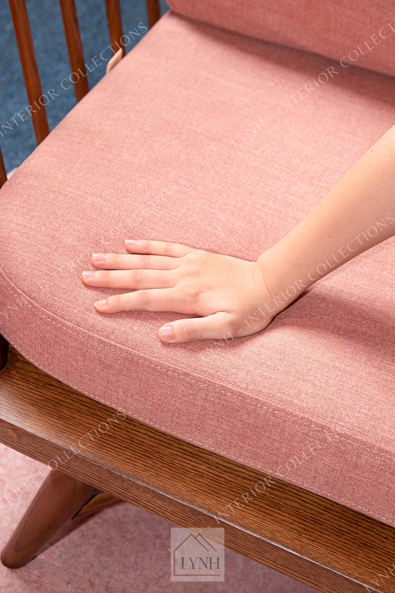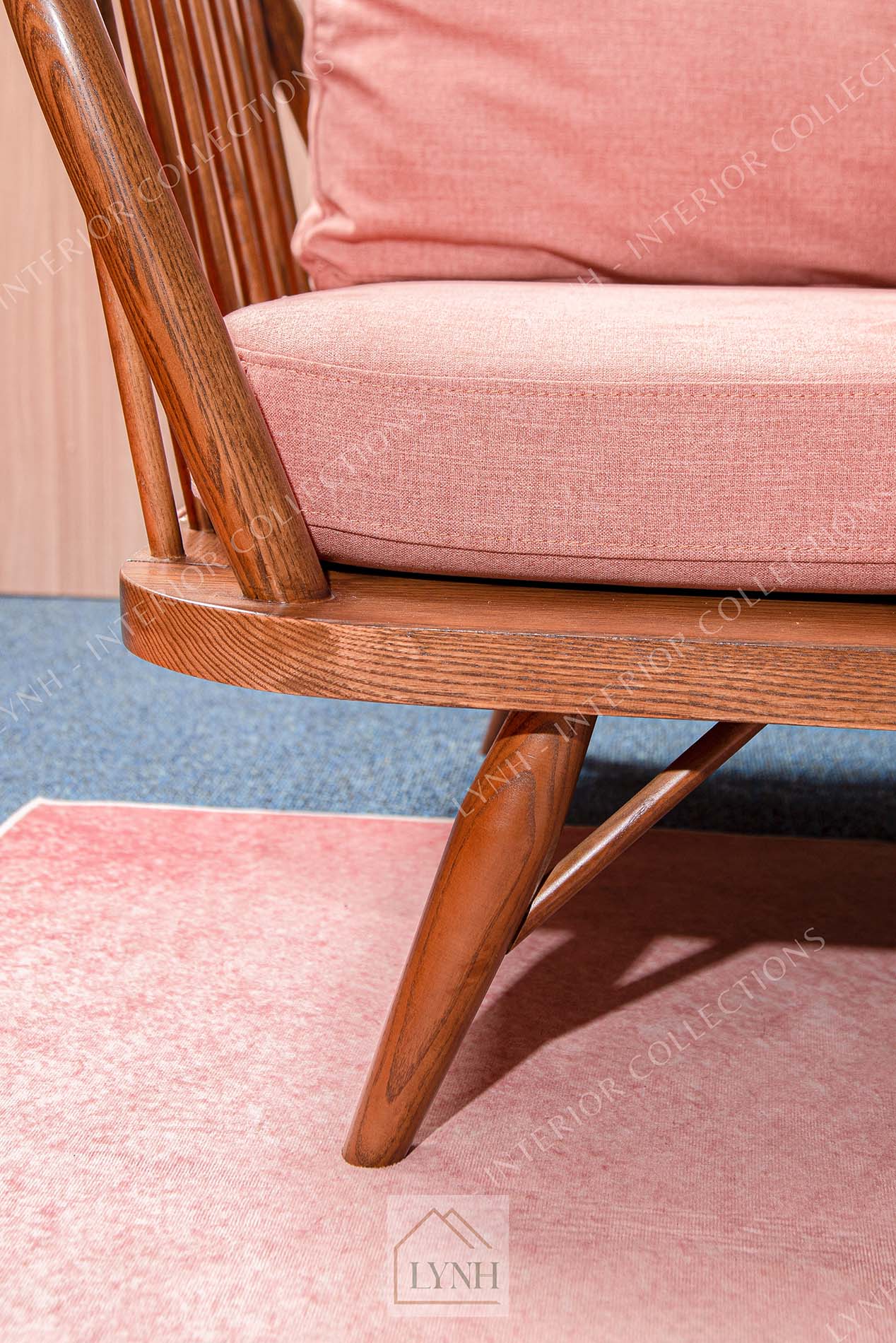 Sản phẩm sở hữu những đường nét cong mềm mại, kết hợp với phần tựa lưng nan gỗ song song. Việc sử dụng các nan gỗ cho sofa phòng khách vừa mang lại sự chắn chắn vừa khiến không gian trở nên thoáng đãng hơn thay vì những thiết kế thành khối lớn.