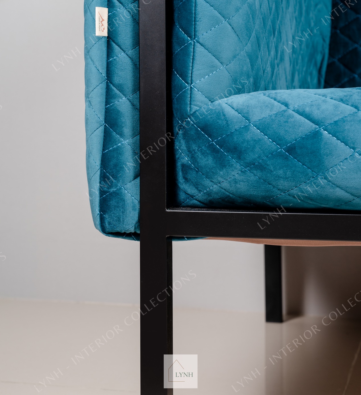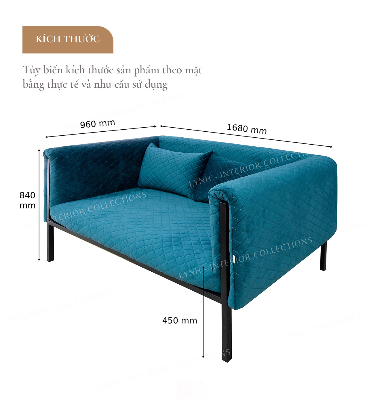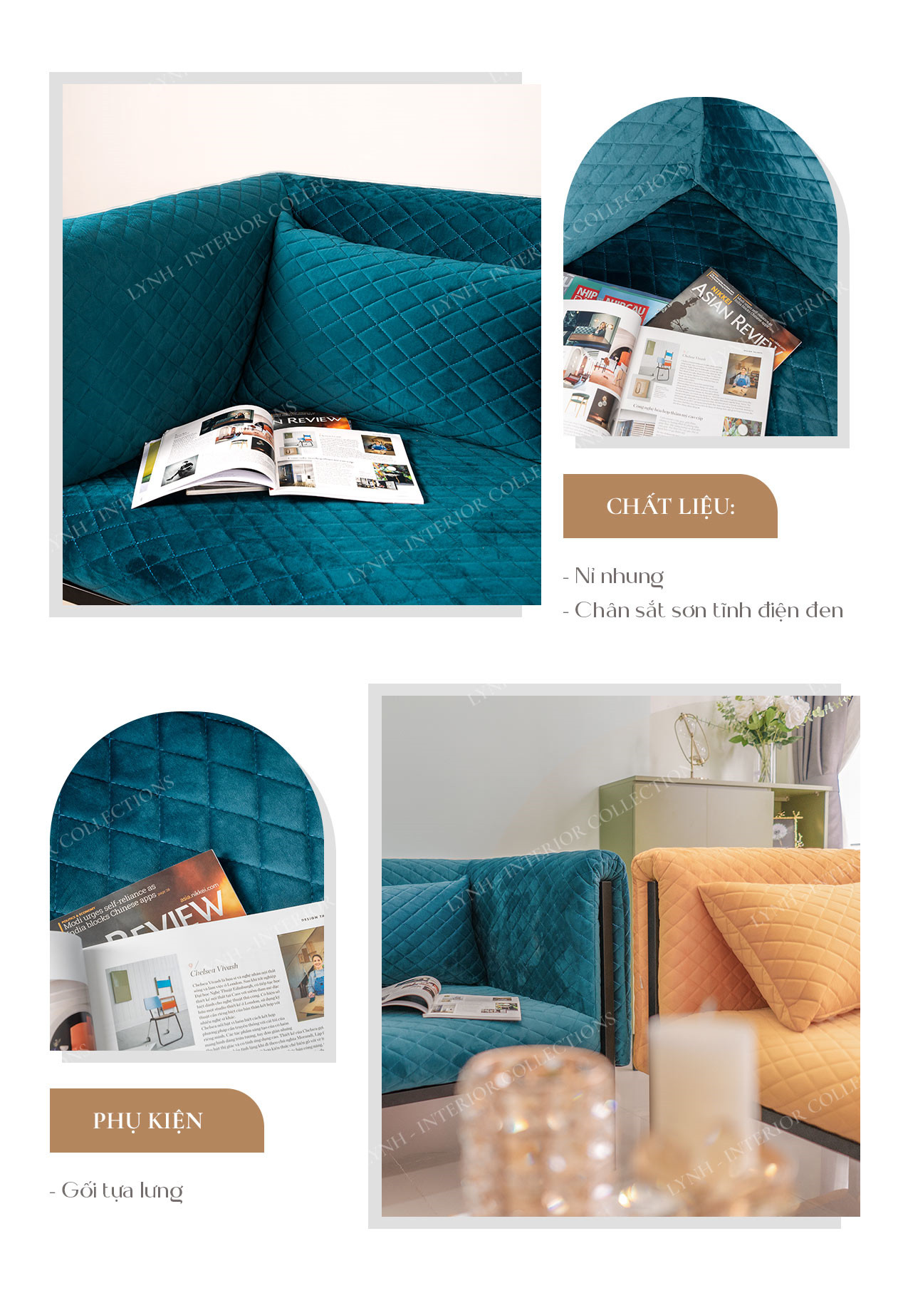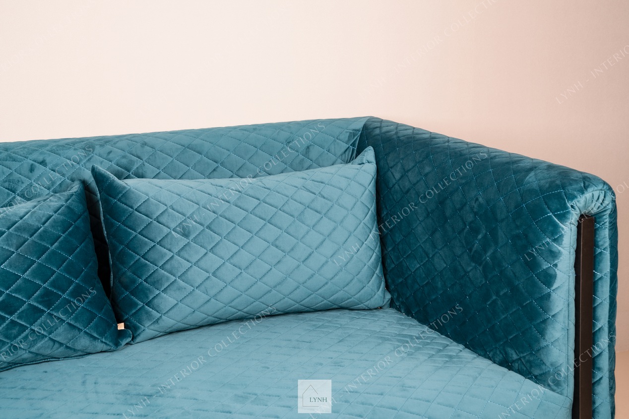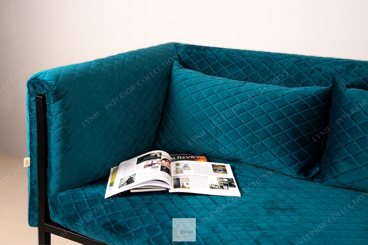 Phần đệm mút Inoac của sofa khung sắt êm ái và thoáng khí sở hữu độ mềm lý tưởng mang đến cảm giác dễ chịu cho người sử dụng. Bọc bên ngoài lớp đệm này là chất liệu nhung cao cấp nhập khẩu Hàn Quốc giúp cho ghế bền đẹp hơn. Ngoài ra, tone màu xanh sáng thanh lịch giúp sản phẩm dễ dàng kết hợp với nhiều mẫu bàn trà, kệ tivi,…