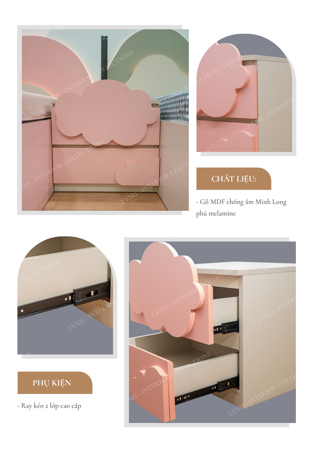 Nếu bạn đang muốn tìm kiếm một chiếc táp đầu giường hiện đại cho bé theo phong cách dễ thương thì chắc chắn không thể bỏ qua mẫu táp bé gái đám mây của Lynh. Với thiết kế dễ thương và màu sắc nổi bật thì chắc chắn bé yêu nhà bạn sẽ vô cùng thích thú.