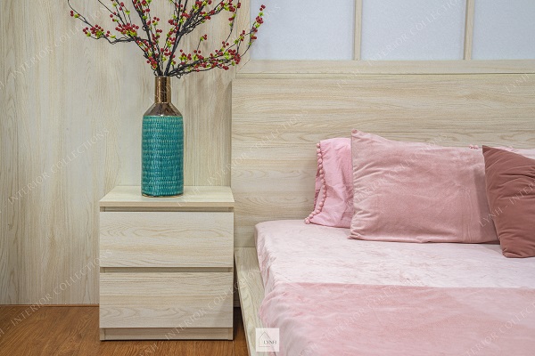 Hơn nữa, mặt trên của tab đầu giường đơn giản bạn có thể đặt thêm những món đồ decor như: đèn ngủ, khung ảnh, sách, bình hoa,… giúp không gian thêm phần sinh động và có sức sống.