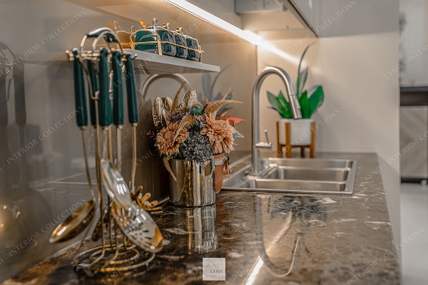 - Những trang thiết bị và phụ kiện bếp cần được sắp xếp thông minh, có sự liên kết hài hòa với tủ