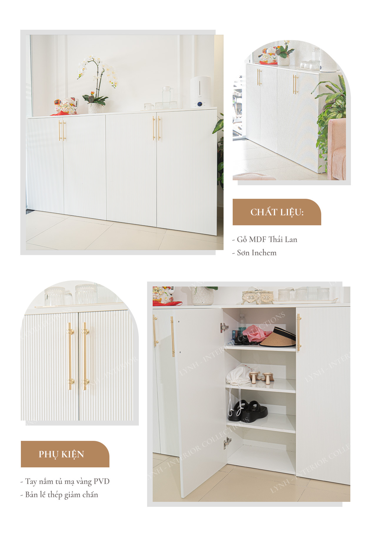 Bên cạnh đó, thiết kế tủ giày trắng còn phát huy tối đa xông năng bảo vệ giày dép khỏi bụi bặm, đồng thời đảm bảo được tính thẩm mỹ cho không gian sống. Tại Lynh các mẫu tủ giày có đa dạng mẫu mã, kích thước, mức giá cạnh tranh phù hợp với nhu cầu và túi tiền của nhiều gia đình.