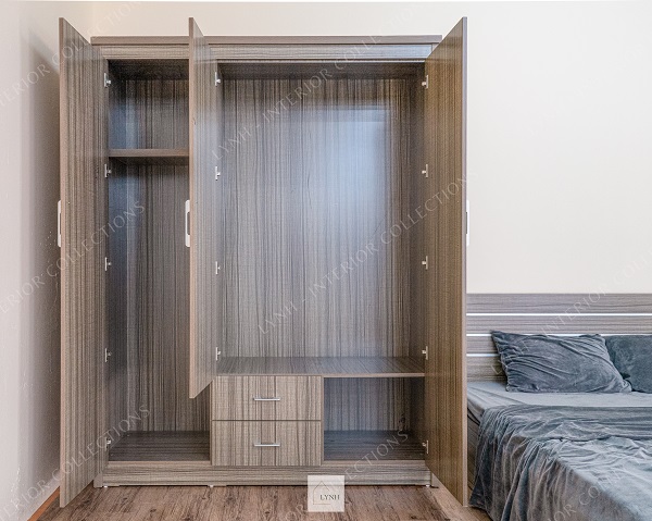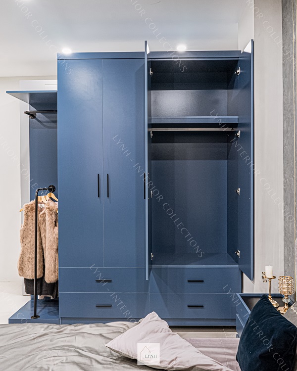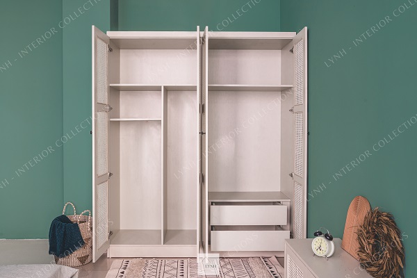 Nhưng thiết kế tủ 4 cánh thường là âm tường hoặc kịch trần để tạo nên không gian thoáng đãng, và tiện lợi cho căn nhà của bạn. Bên cạnh đó, việc phân chia thành những ngăn để đồ rộng rãi giúp thuận tiện hơn mỗi lần tìm kiếm quần áo, và không mất quá nhiều thời gian.